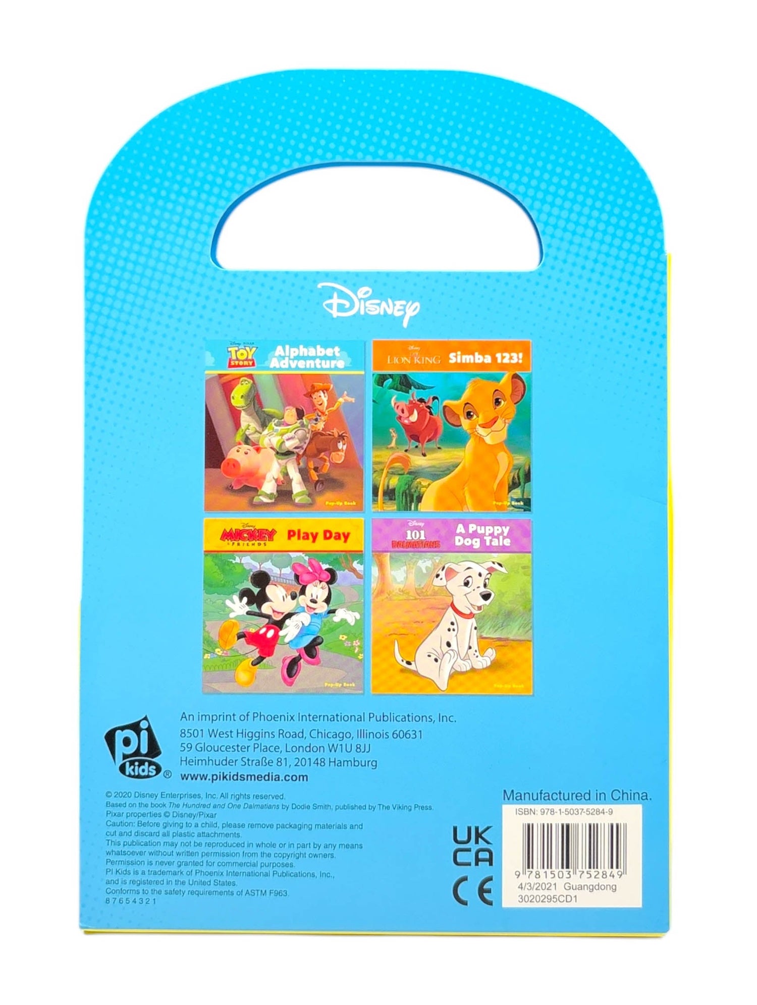 Read stories about Mickey & Friends and the 101 Dalmatians! Count to 10 with Simba from The Lion King! And practice the alphabet with Woody and Buzz from Toy Story! Each story in the set includes an exciting pop-up scene. Packaged in a handy carry-case. Ages 4-8. Fully illustrated in color.