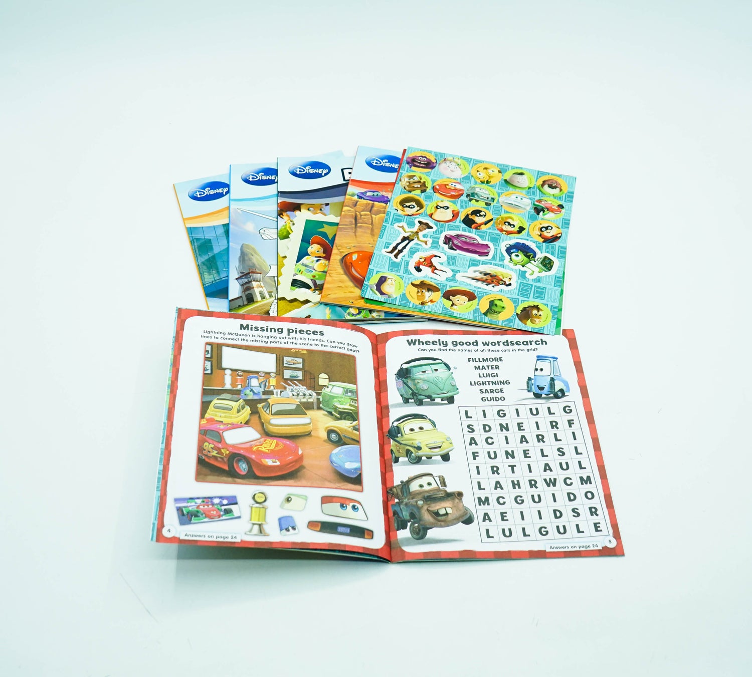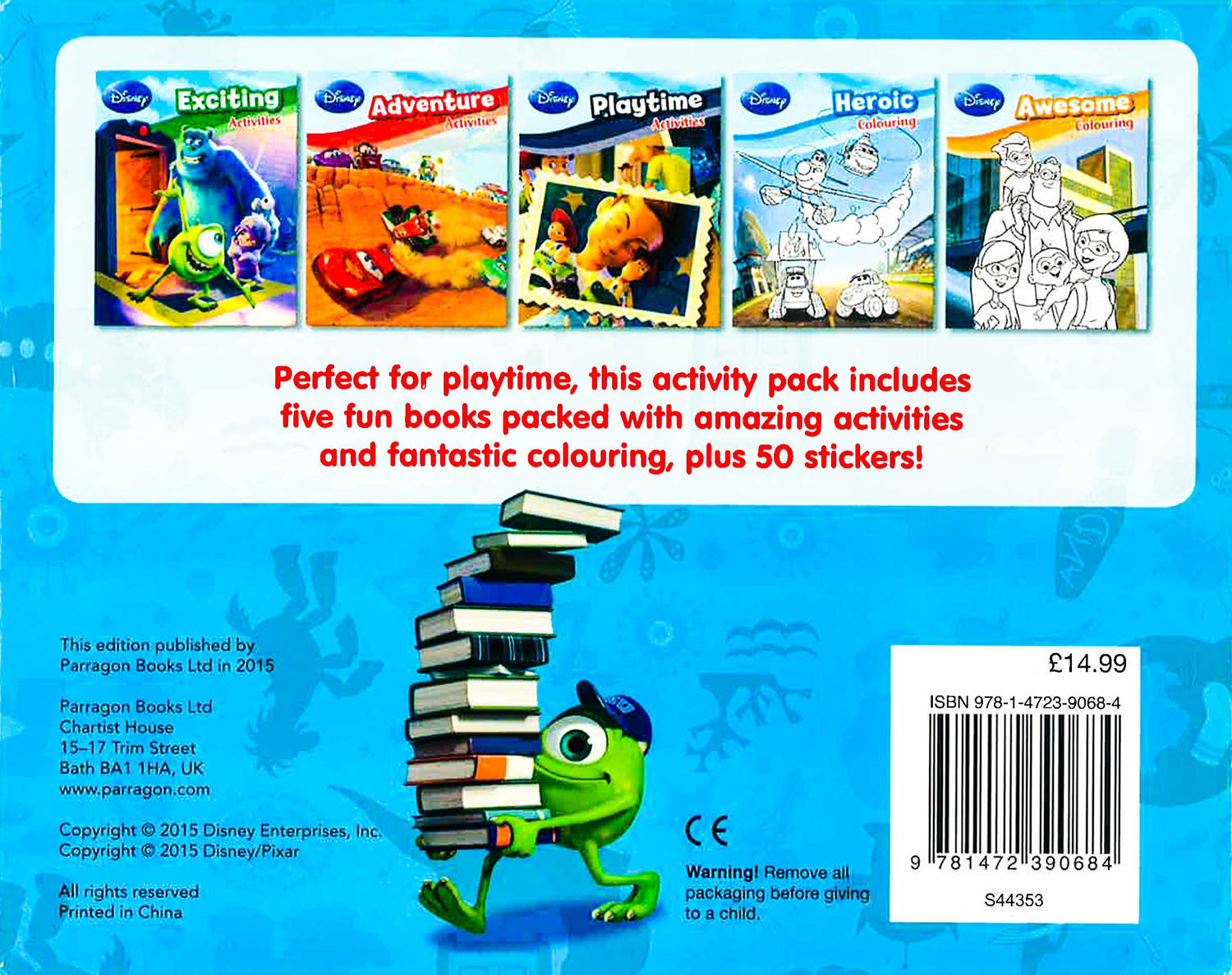 Perfect for playtime, this activity pack includes five fun books packed with amazing activities and fantastic colouring, plus 50 stickers! Includes Monsters Inc, Cars, Toy Story, Planes and The Incredibles.
