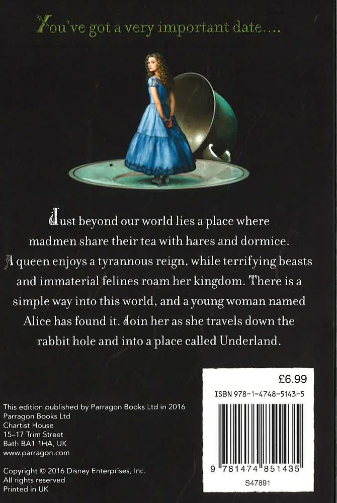 Just beyond our world lies a place where madmen share their tea with hares and dormice. A queen enjoys a tyrannous reign, while terrifying beasts and immaterial felines roam her kingdom. There is a simple way into this world, and a young woman named Alice has found it. Join her as she travels down the rabbit hole and into Wonderland in this book based on the film by Tim Burton.