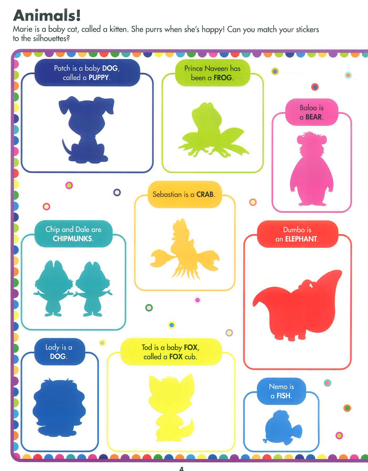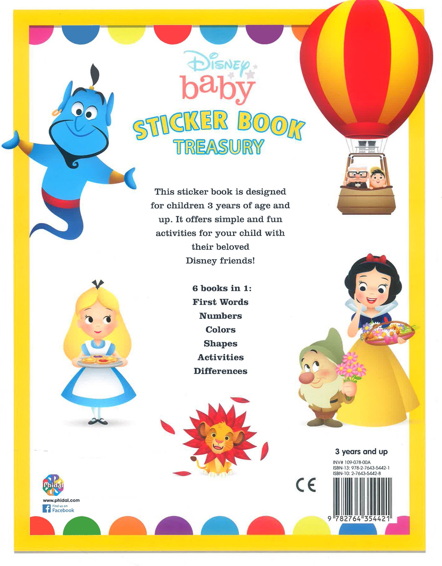 This sticker book is designed for children 3 years of age and up. It offers simple and fun activities for your child with their beloved Disney friends!