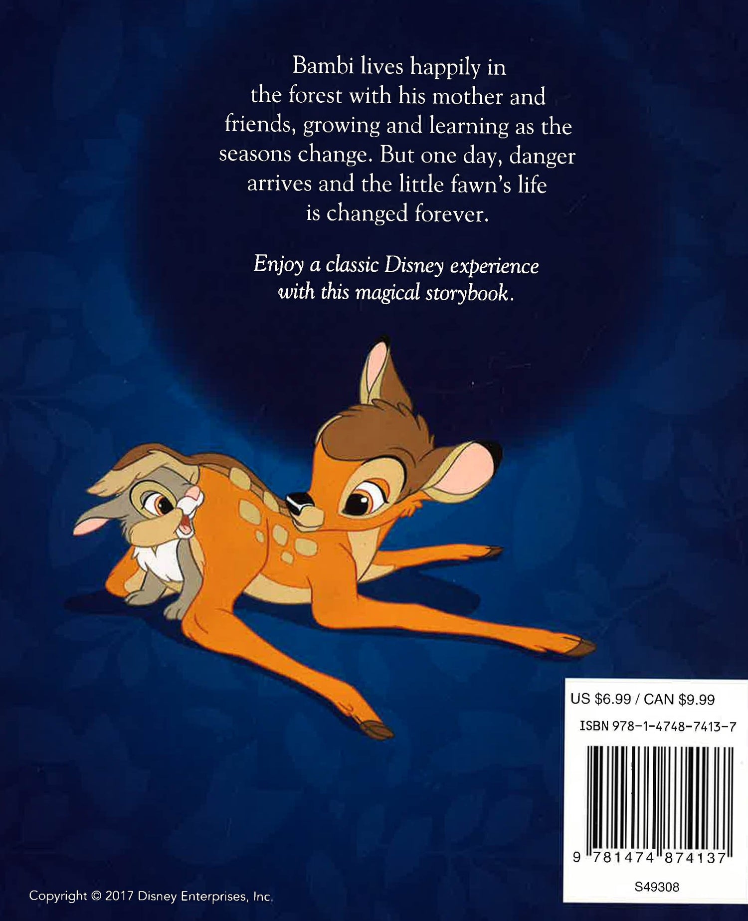 Bambi lives happily in the forest with his mother and friends, growing and learning as the seasons change. But one day, danger arrives and the little fawn's life is changed forever. Find out what happens with this Disney Bambi Magical Story. Enjoy a classic Disney experience in this magical storybook with an embossed tin cover image.