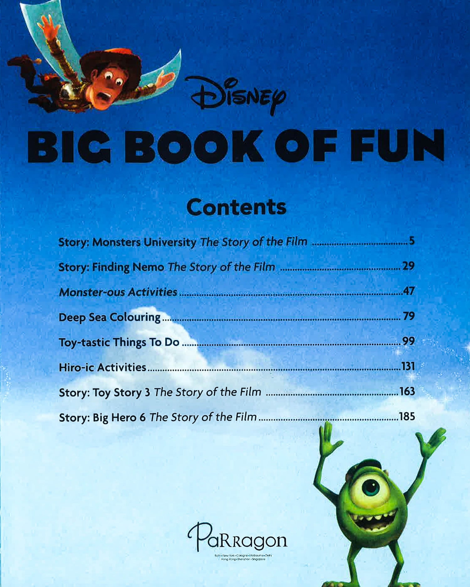 Follow Mike, Dory, Woody and all of your favourite Disney characters with this amazing book. Spot the difference, join the dots, colour in scenes, and use over 50 stickers to decorate the pages. Disney Big Book of Fun has over 200 fun-filled pages of stories, colouring and activities.