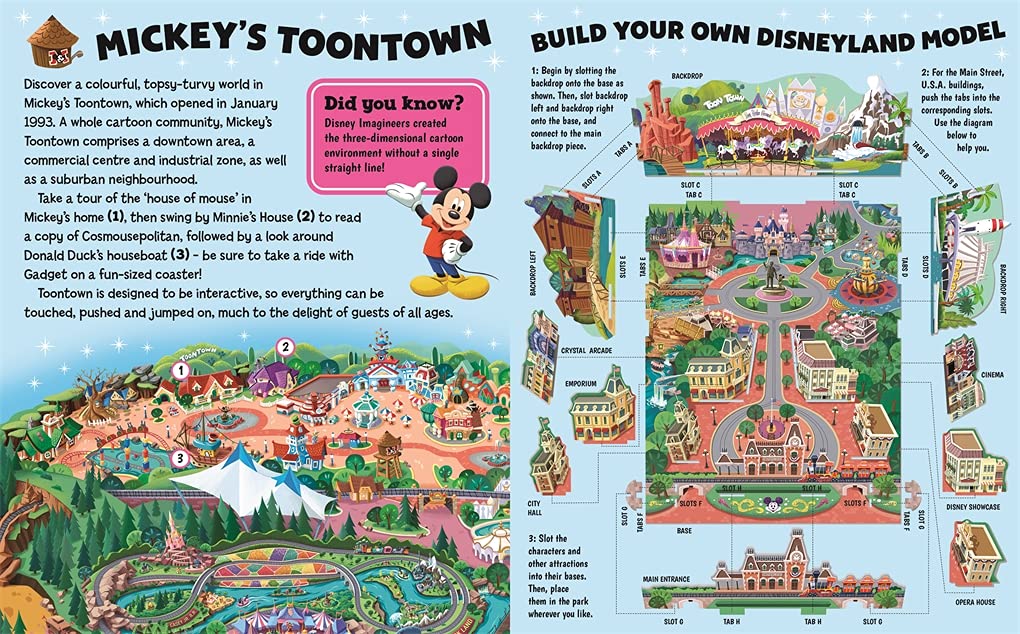 Celebrate the magic of Disneyland Park in California from the comfort of your own home! Immerse yourself in the fun and wonder as you read about the different lands, from the exhilarating Star Wars: Galaxy's Edge, to the quirky world of Mickey's Toontown. Then, press out the pieces, follow the instructions and build your very own Disneyland model!