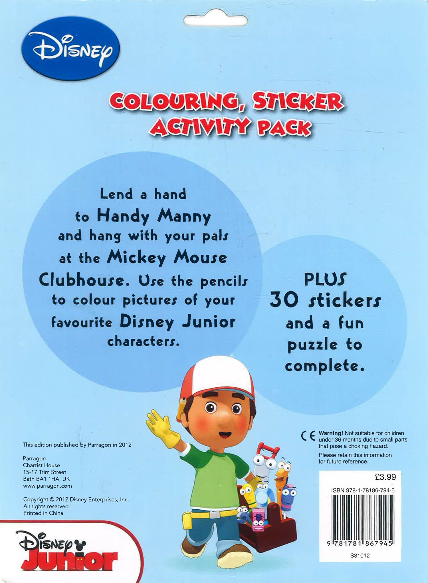 Lend a hand to Handy Manny and hang with your pals at the Mickey Mouse Clubhouse. Use the pencils to colour pictures of your favourite Disney Junior characters. Plus 30 stickers and a fun puzzle to complete.