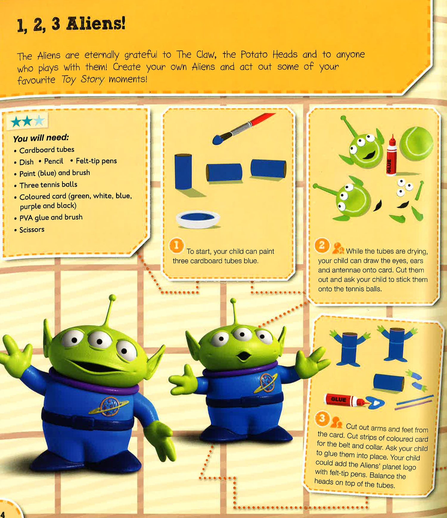 This is soft cover 64 page book with projects based on Finding Nemo, The Incredibles, WALL-E, Monsters Inc. and Cars. There are some really fun and creative ideas in this book with some very clear instructions. There are also some stickers and press-outs to go along with the crafts.