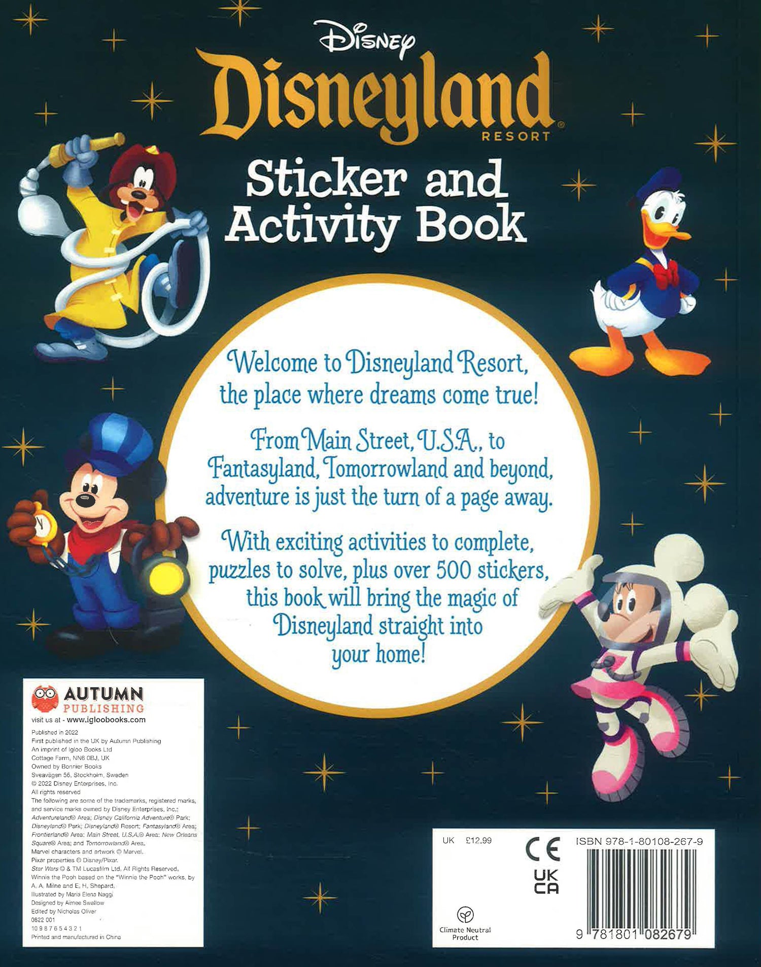From Main Street, U.S.A., to Fantasyland, Tomorrowland and beyond, adventure is just the turn of a page away. With exciting activities to complete, puzzles to solve, plus over 500 stickers, this book will bring the magic of Disneyland straight into your home!