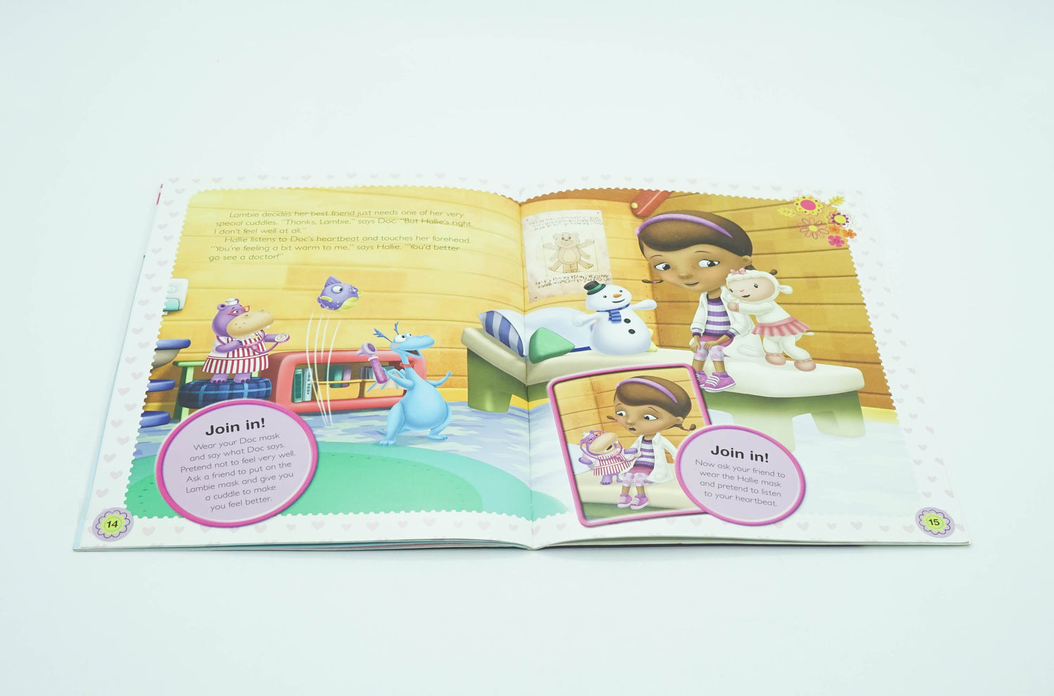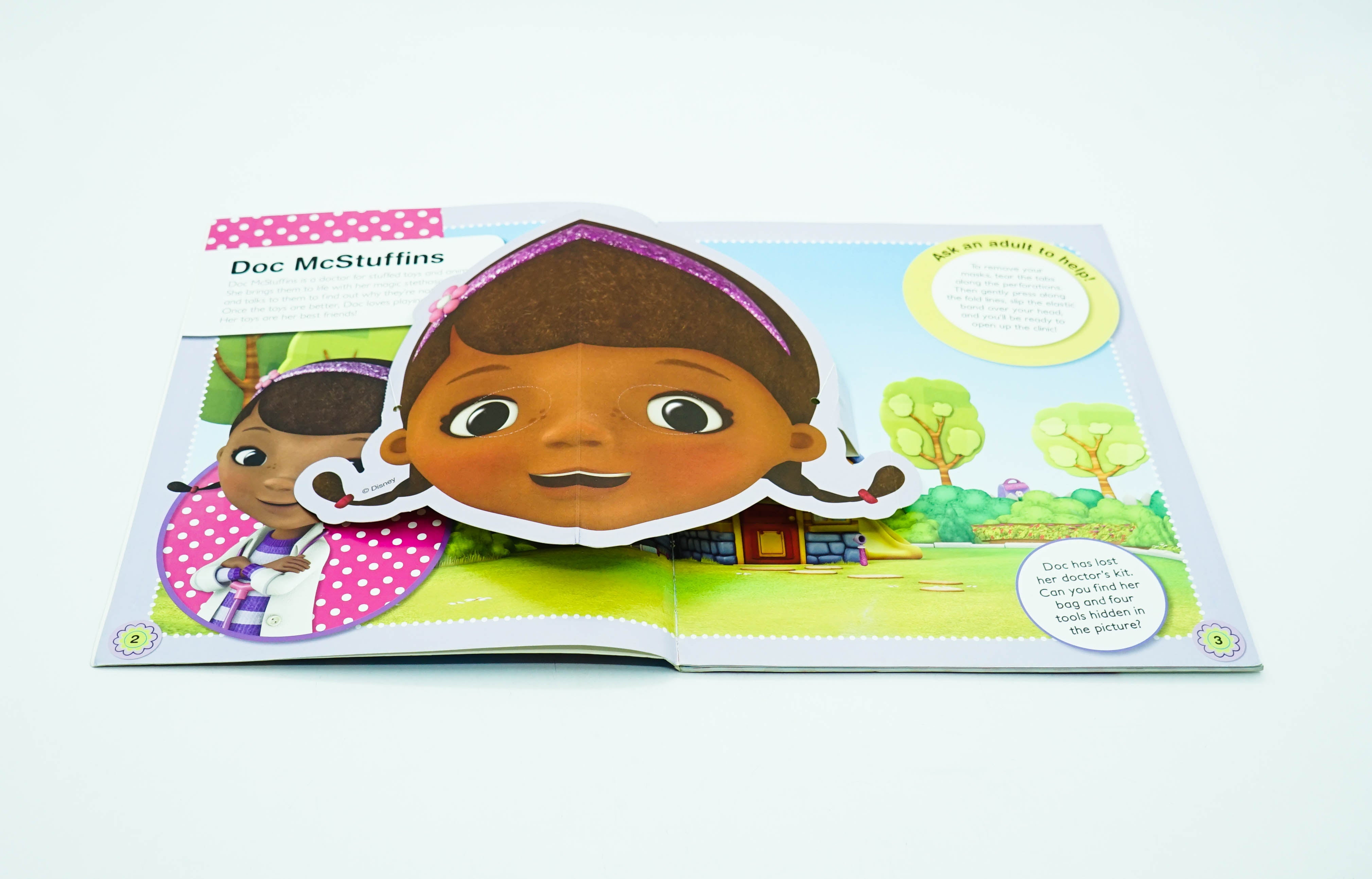 Doc McStuffins has so much fun with her friends, and now you can be part of their cute world! Join in the heartwarming story by pressing out the masks and becoming Doc, Lambie, Hallie, or Stuffy! There are four press-out masks with elastic, plus a story with lots of instructions to join in.