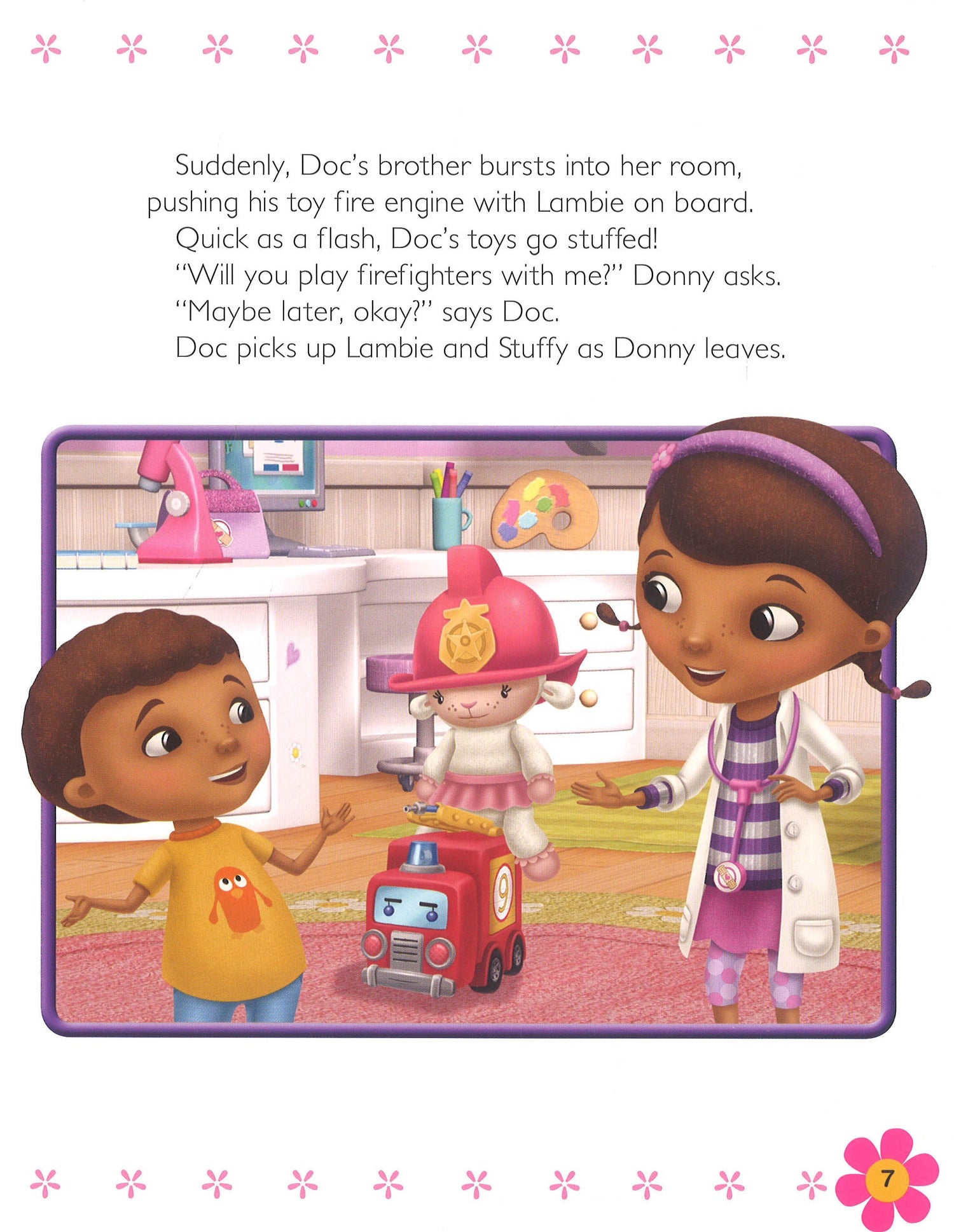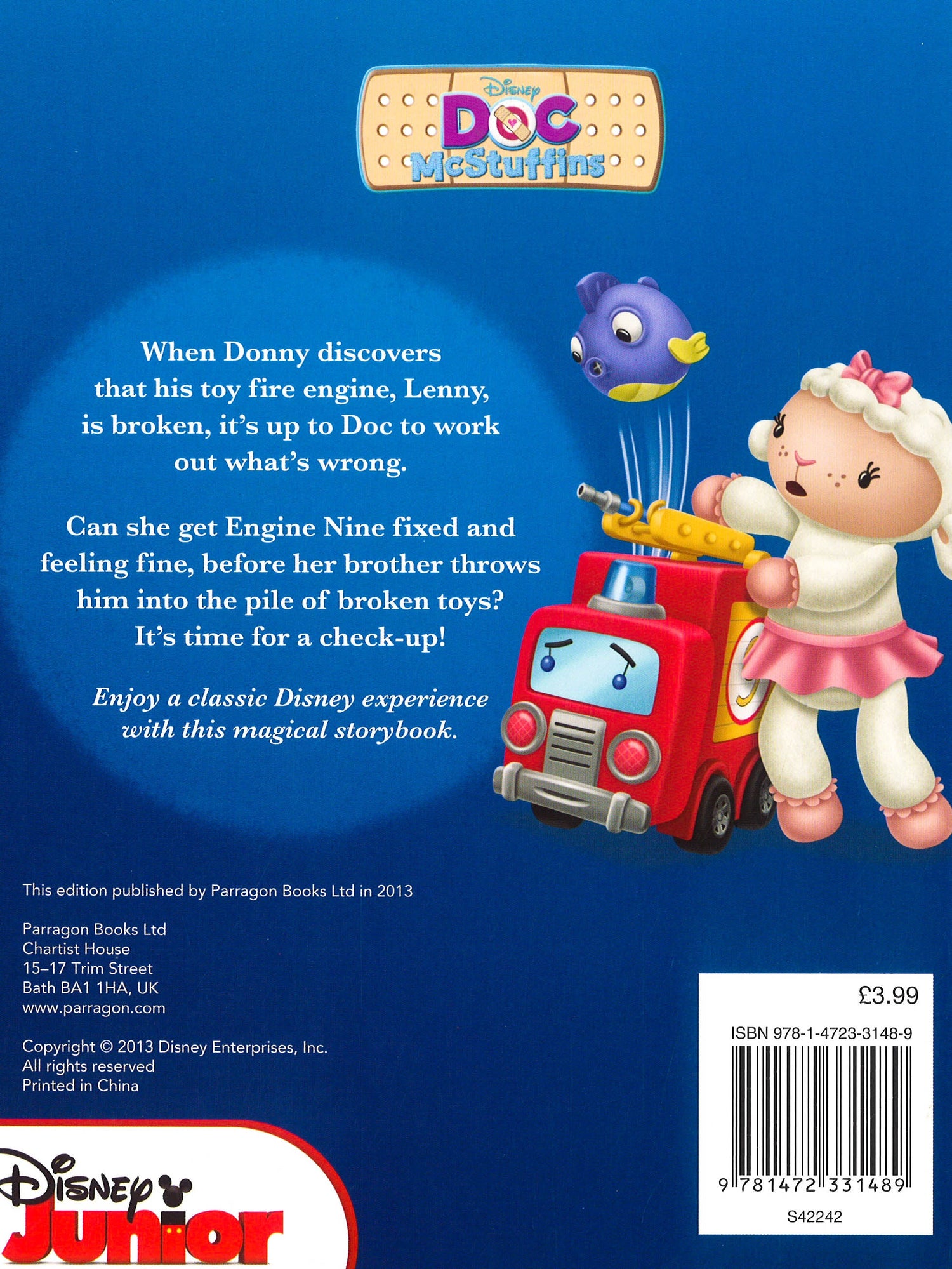 When Donny discovers that his toy fire engine, Lenny, is broken, its up to Doc to figure out whats wrong. Can she get Engine Nine fixed and feeling fine, before her brother throws him into the pile of broken toys? Its time for a check-up! Enjoy a classic Disney experience with this magical storybook.