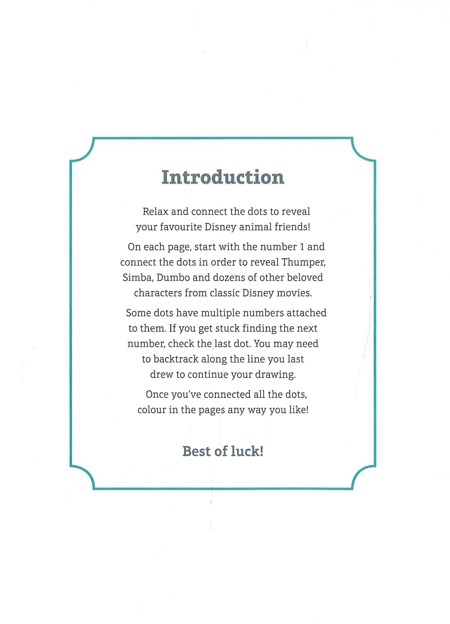 Follow the numbers and connect the dots to reveal 100 of your favourite Disney animal heroes and villains. After your drawing is complete, use coloured pencils to bring the characters to life!