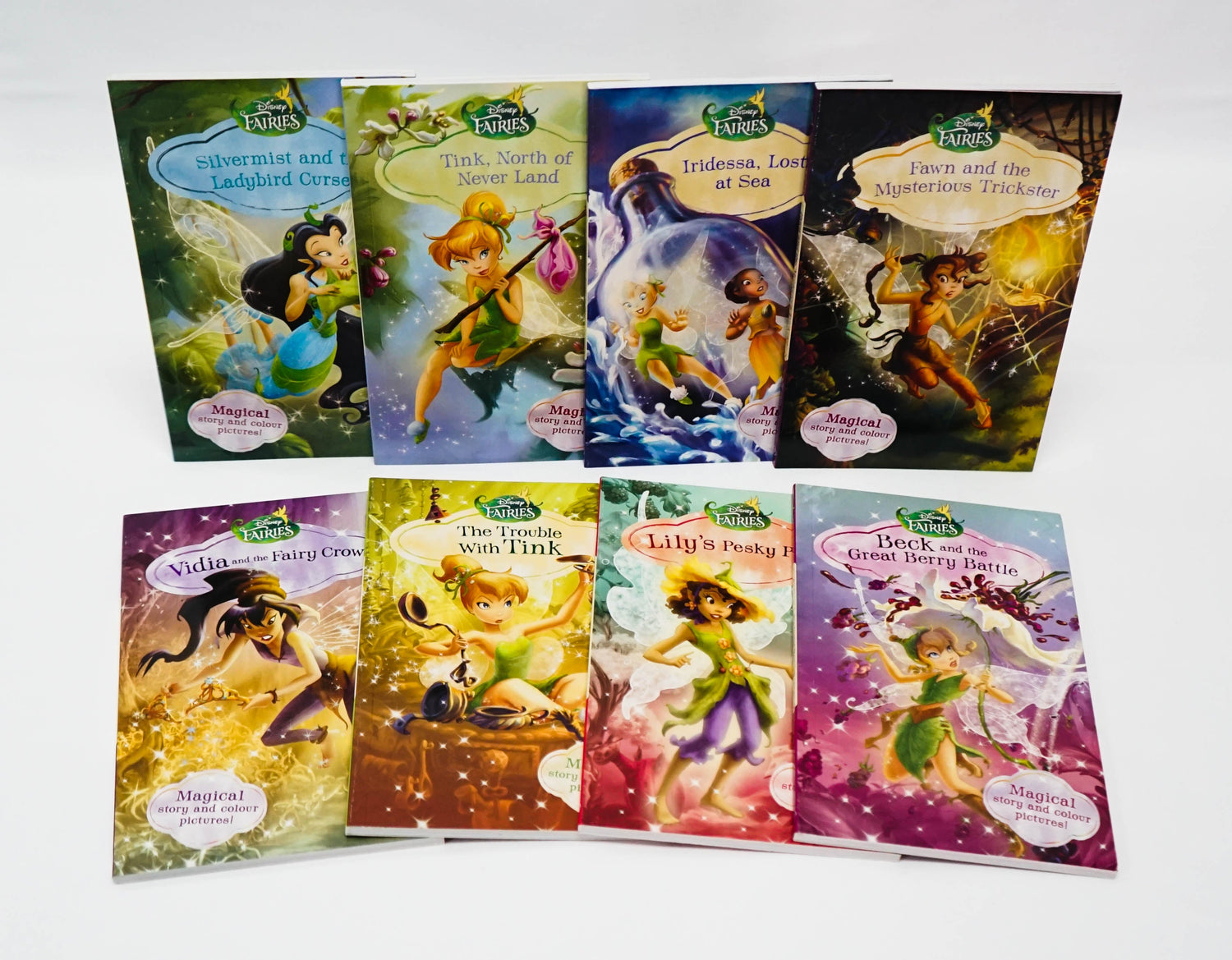 The Disney Fairies Young Readers Set contains perfect first chapter books for primary-aged girls who are beginning to develop their reading confidence. The eight books feature easy-to-read typeface, eye-catching illustrations and engaging stories starring a range of Disney fairies, including Tinker Bell and her special friends in Pixie Hollow. The chapters are short so that newly emerging readers can feel a sense of accomplishment as they progress through the books, and the collection is sure to delight all young fans of fairies!