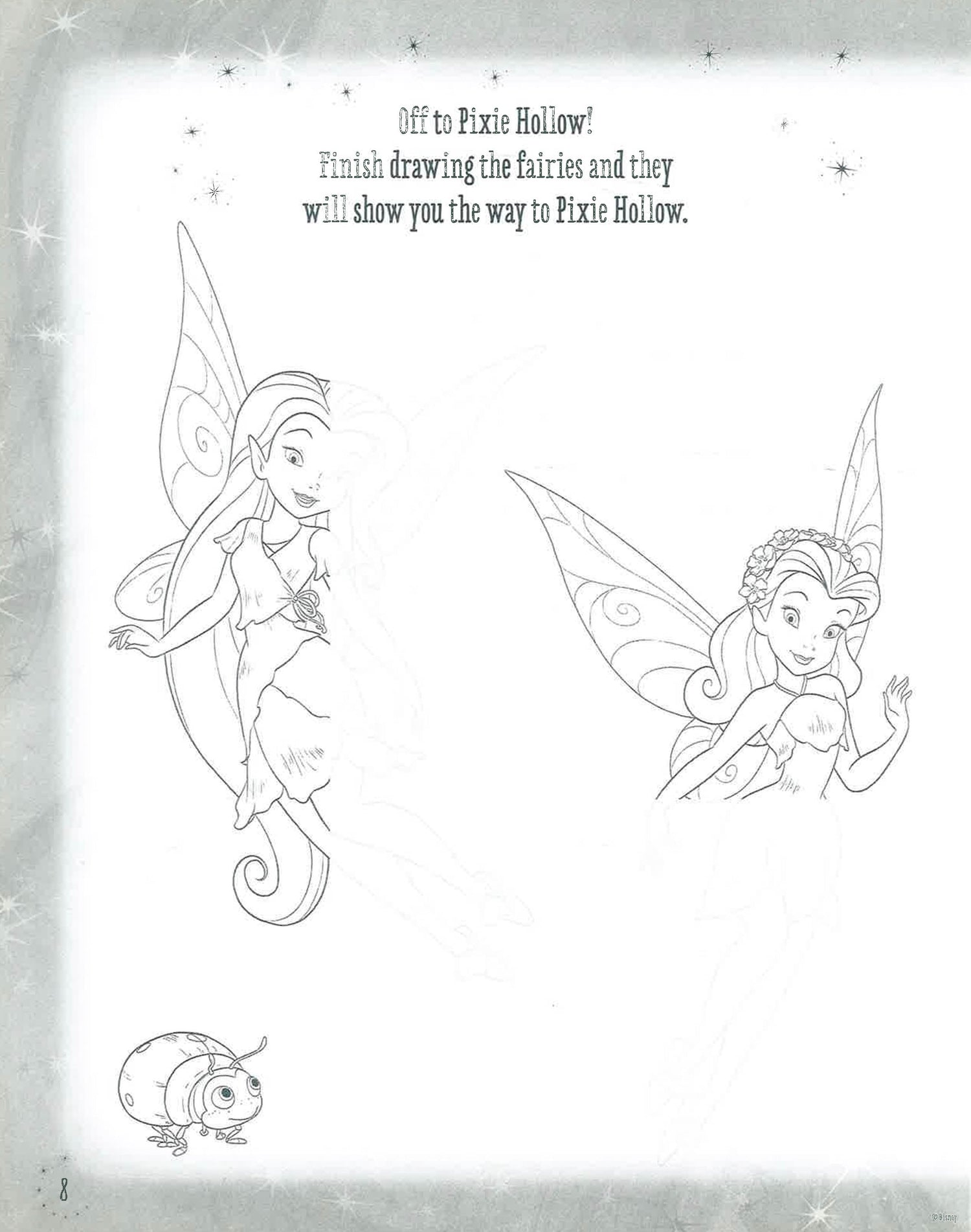 Enter the world of Pixie Hollow. Wave a magic pencil and fill these pages with sprinkles of pixie dust creativity. Color Tinker Bell's petal dress, help Rosetta fill the garden with flowers, draw yourself as your favorite fairy, and much more! © 2015 Disney Enterprises, Inc. All Rights Reserved.