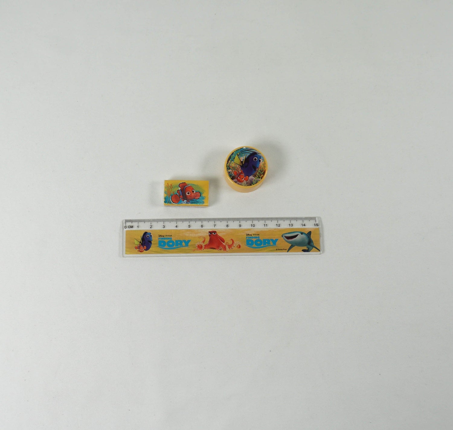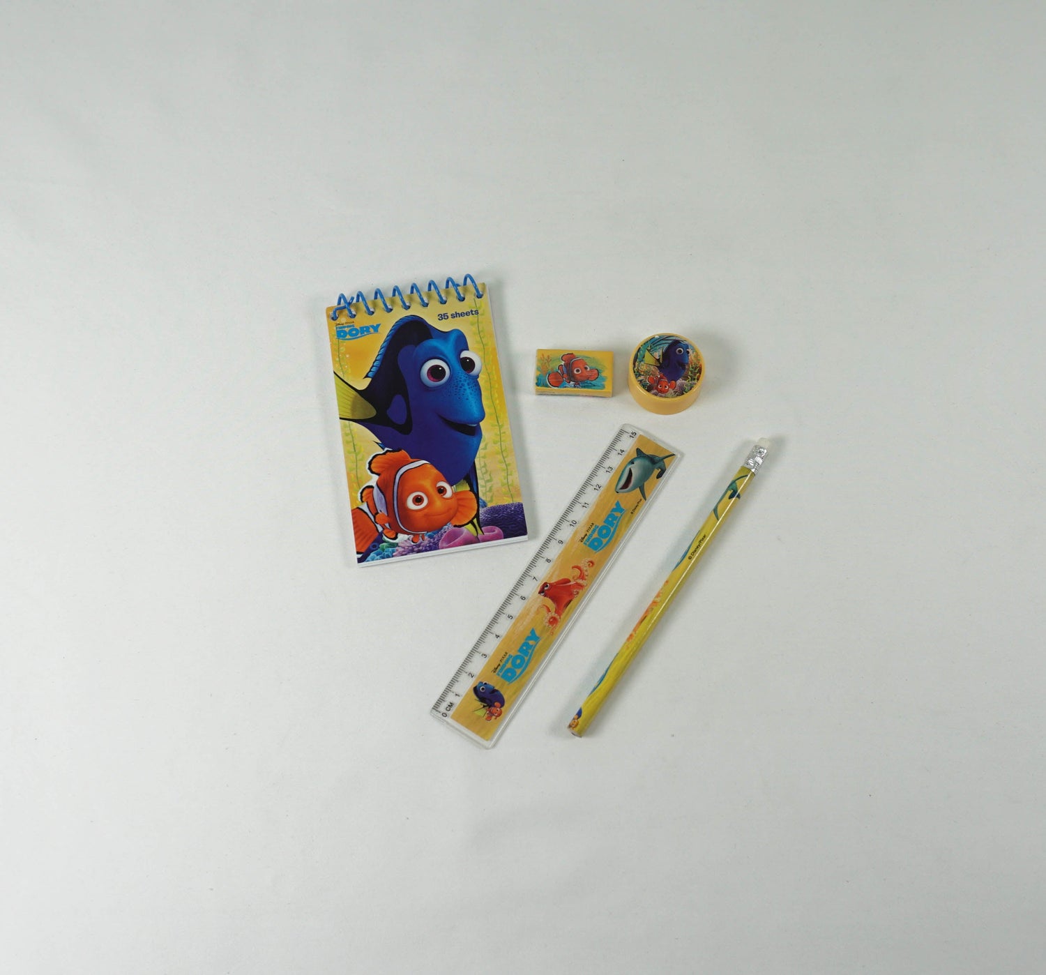 1 mini notepad (35 sheets) 1 pencil with eraser 1 eraser with print 1 sharpener 1 ruler