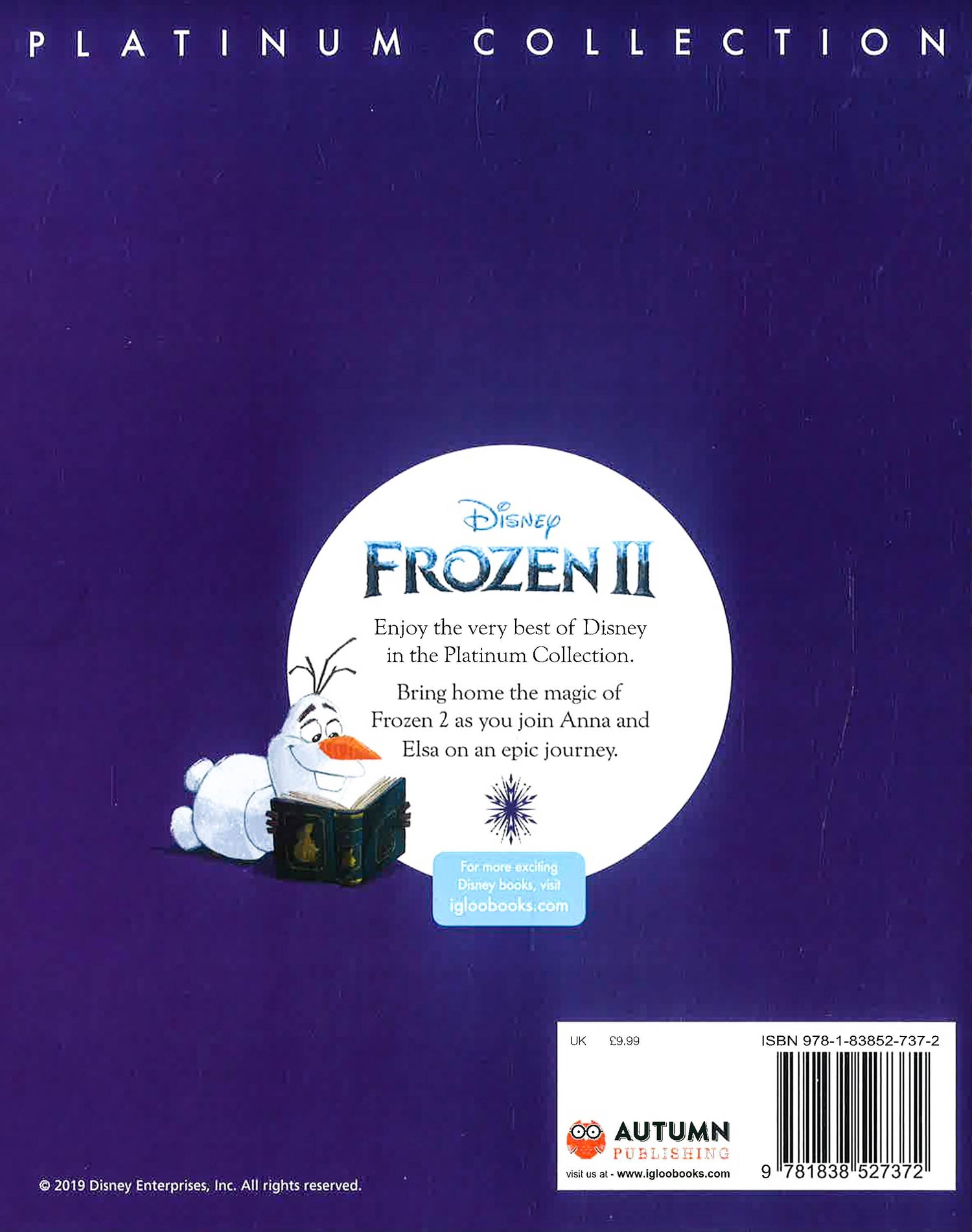Enjoy the very best of Disney in this Platinum Collection! Bring home the magic of Frozen 2 as you join Anna and Elsa on an epic journey in this beautifully illustrated story book, filled with scenes from the movie.