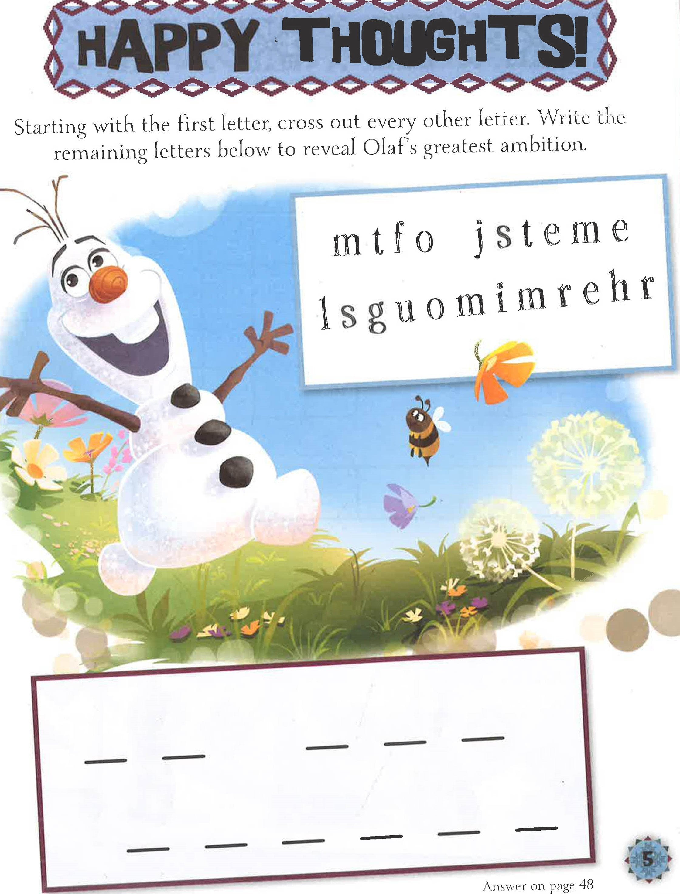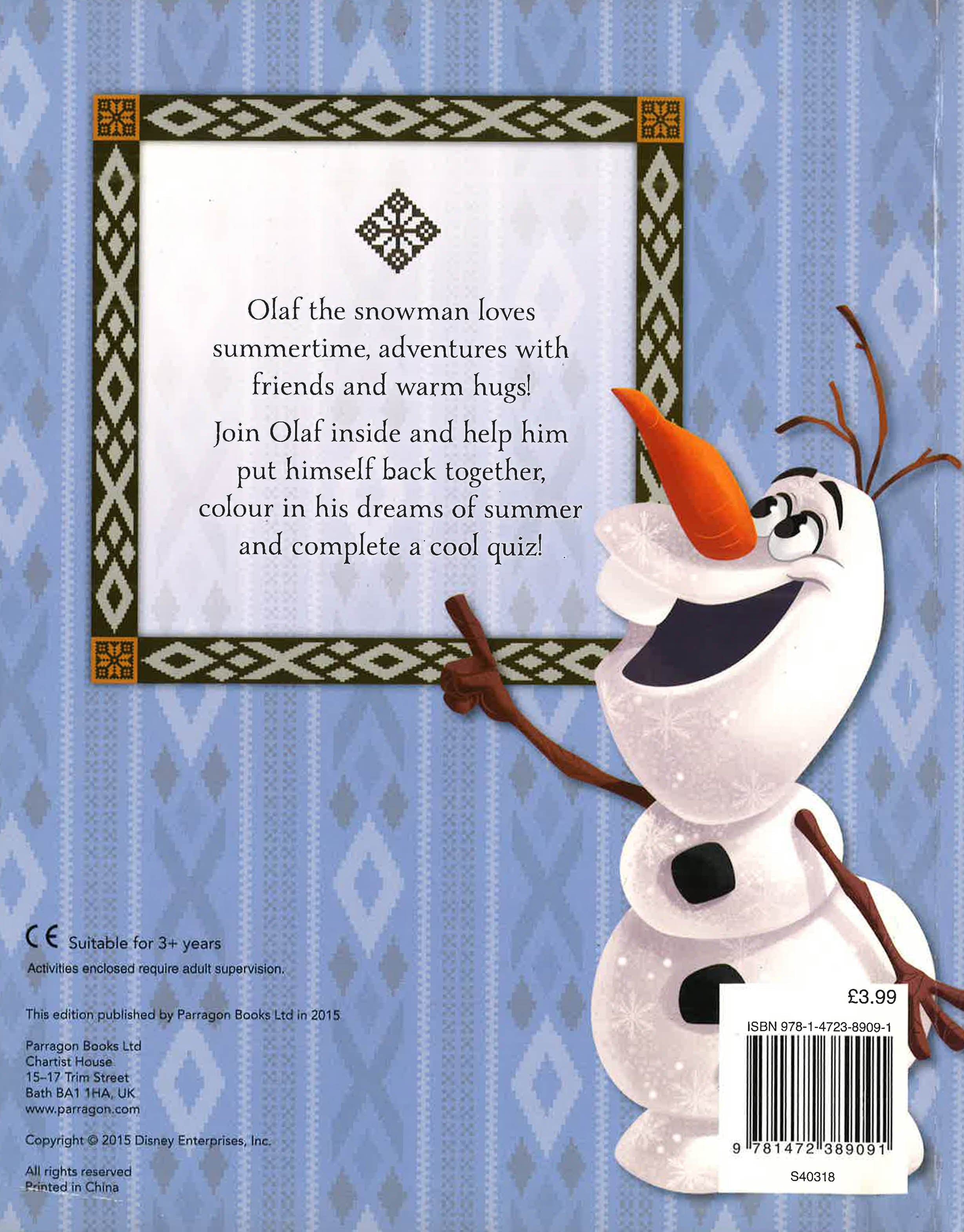 This 48-page activity book is all about Olaf - the hilarious snowman from the record-breaking Disney film, Frozen. Join him inside and help him put himself back together, draw his dreams, complete fun puzzles and lots more!