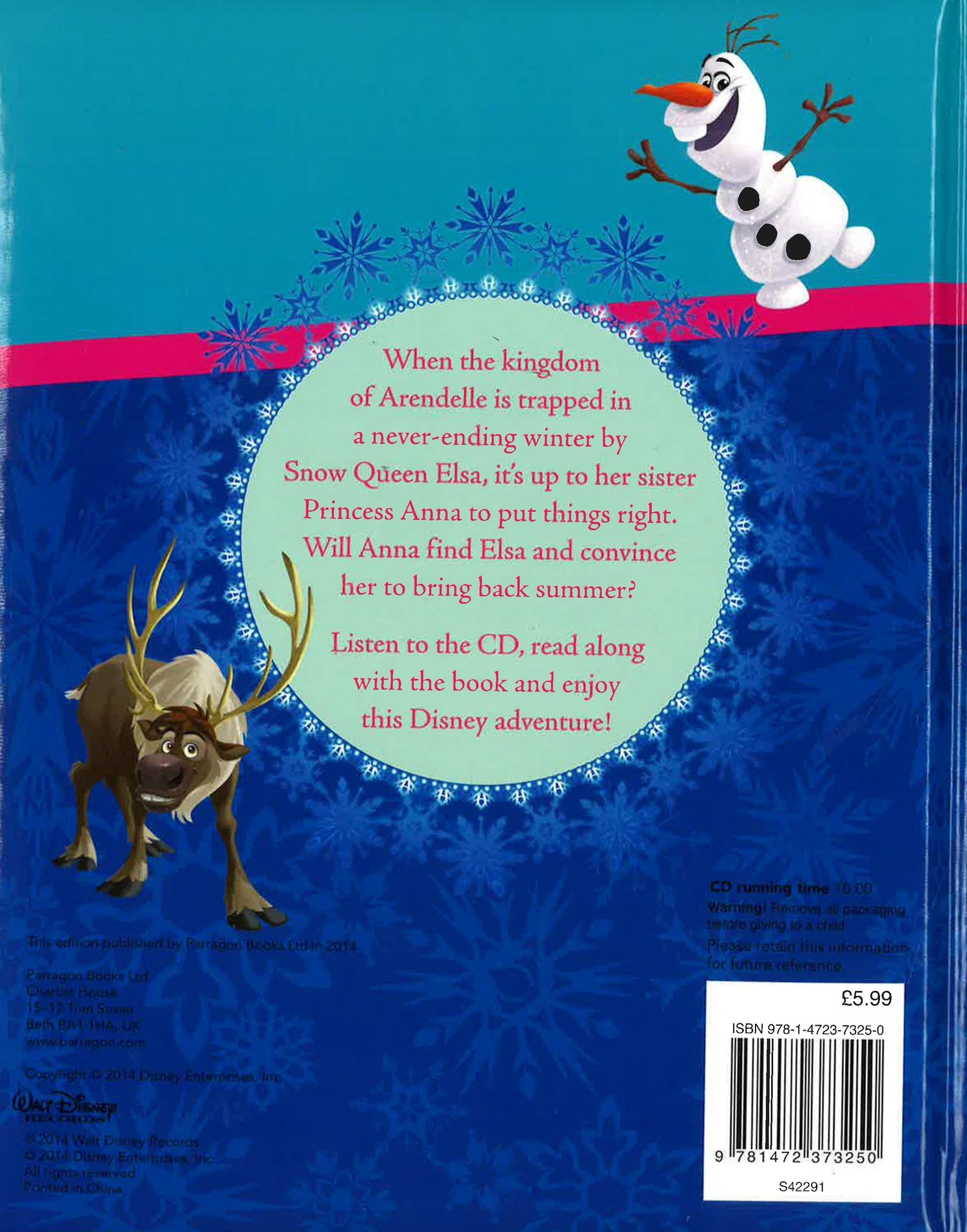 When the kingdom of Arendelle is trapped in a never-ending winter by Snow Queen Elsa, it's up to her sister Princess Anna to put things right. Will Anna find Elsa and convince her to bring back summer?Listen to the CD, read along with the book and enjoy the Disney adventure!
