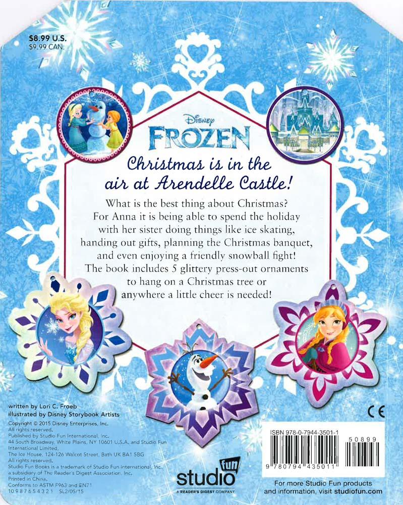 Celebrate the holidays along with Elsa and Anna with this all-new engaging seasonal story and five sturdy glittery press-out ornaments that feature Elsa, Anna, Olaf, Kristoff, and Sven! What do you give the queen who has everything? Anna is on a quest to find the perfect something for her big sister. In the end, she finds it s not things that make the best gifts, it s the giving of herself. The book includes 3 glittery press-out ornaments to hang on a Christmas tree or anywhere a little cheer is needed! *This book may have remainder mark.