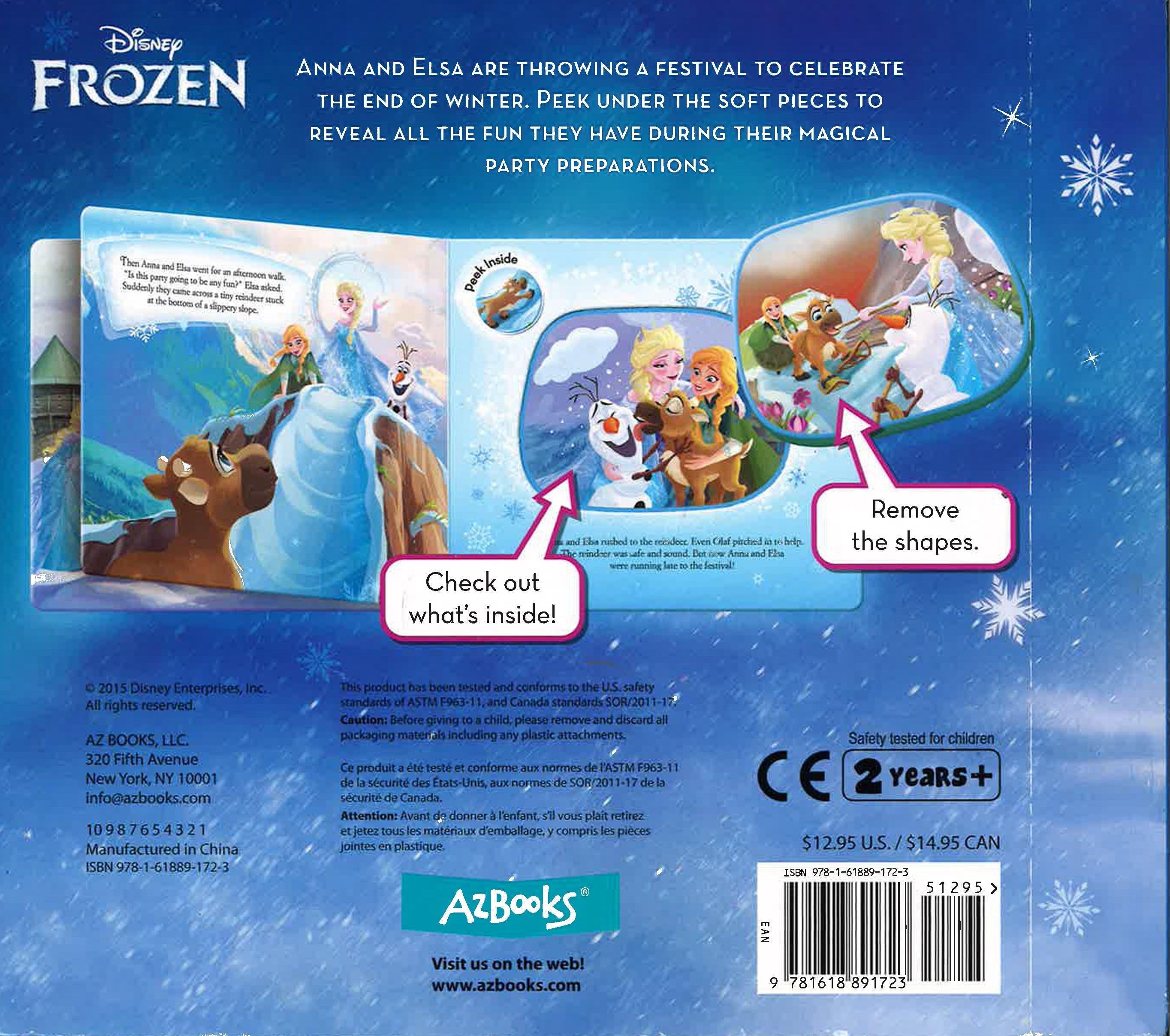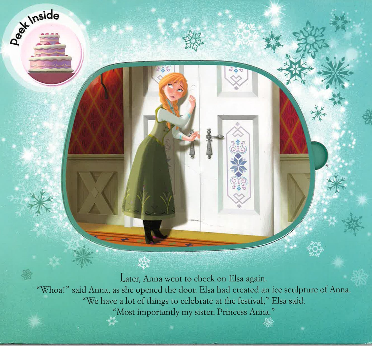 Anna and Elsa are throwing a festival to celebrate the end of Winter. Peek inside the soft pieces to reveal all the fun they have during their magical party preparations.