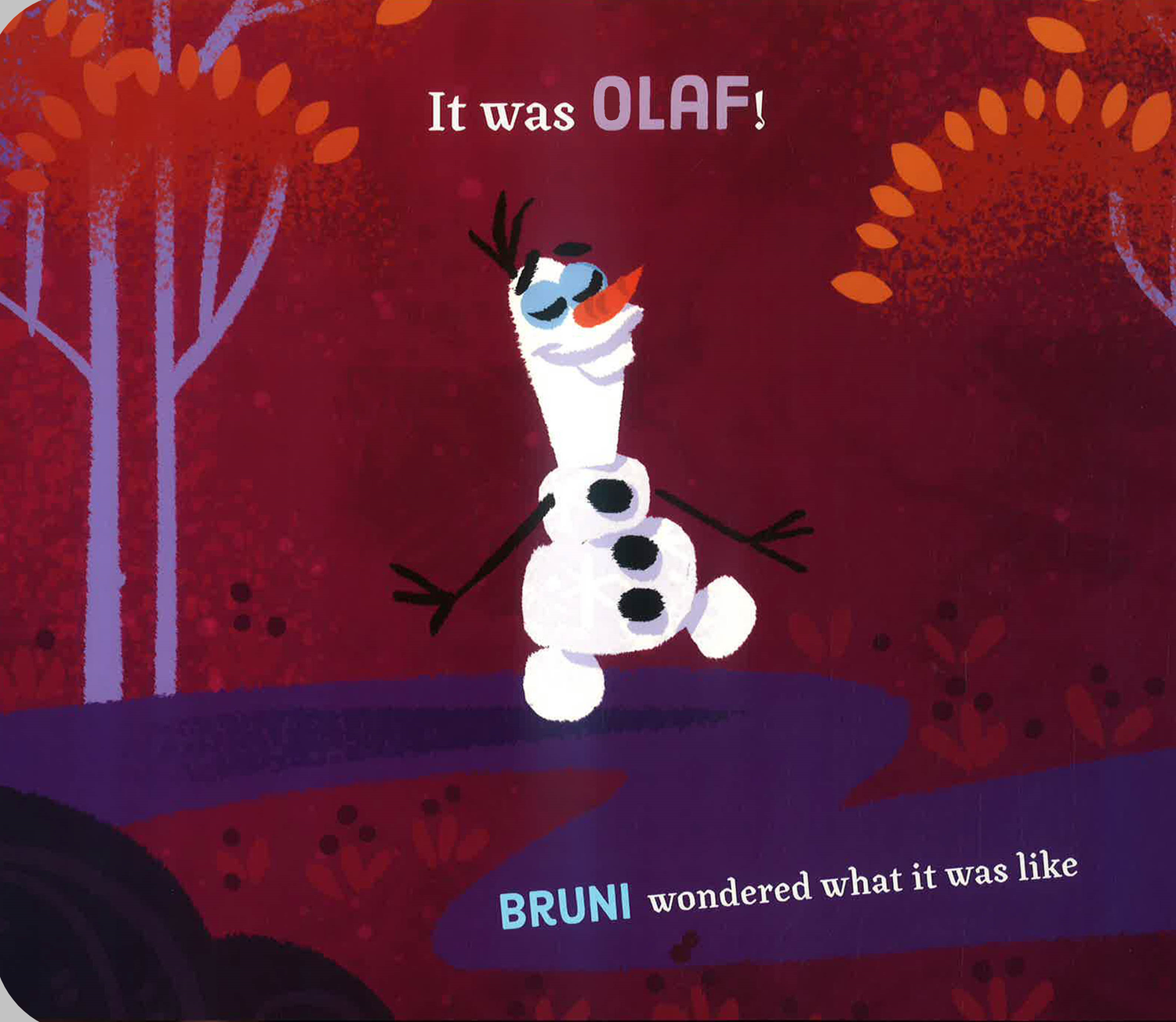 Ever since Elsa introduced Bruni to snow, the Fire Spirit has been fascinated by it. So when Bruni sees everyone's favorite snowman, Olaf, headed on an adventure through the Enchanted Forest, he can't wait to follow him!