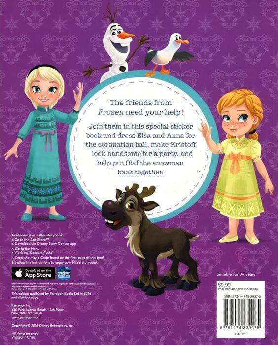 The friends from "Frozen" need your help! Join them in this special sticker book and dress Elsa and Anna for the coronation ball, make Kristoff look smart for a party and help put Olaf the snowman back together. Includes 6 pages of colorful stickers plus over 100 sparkly glitter stickers!