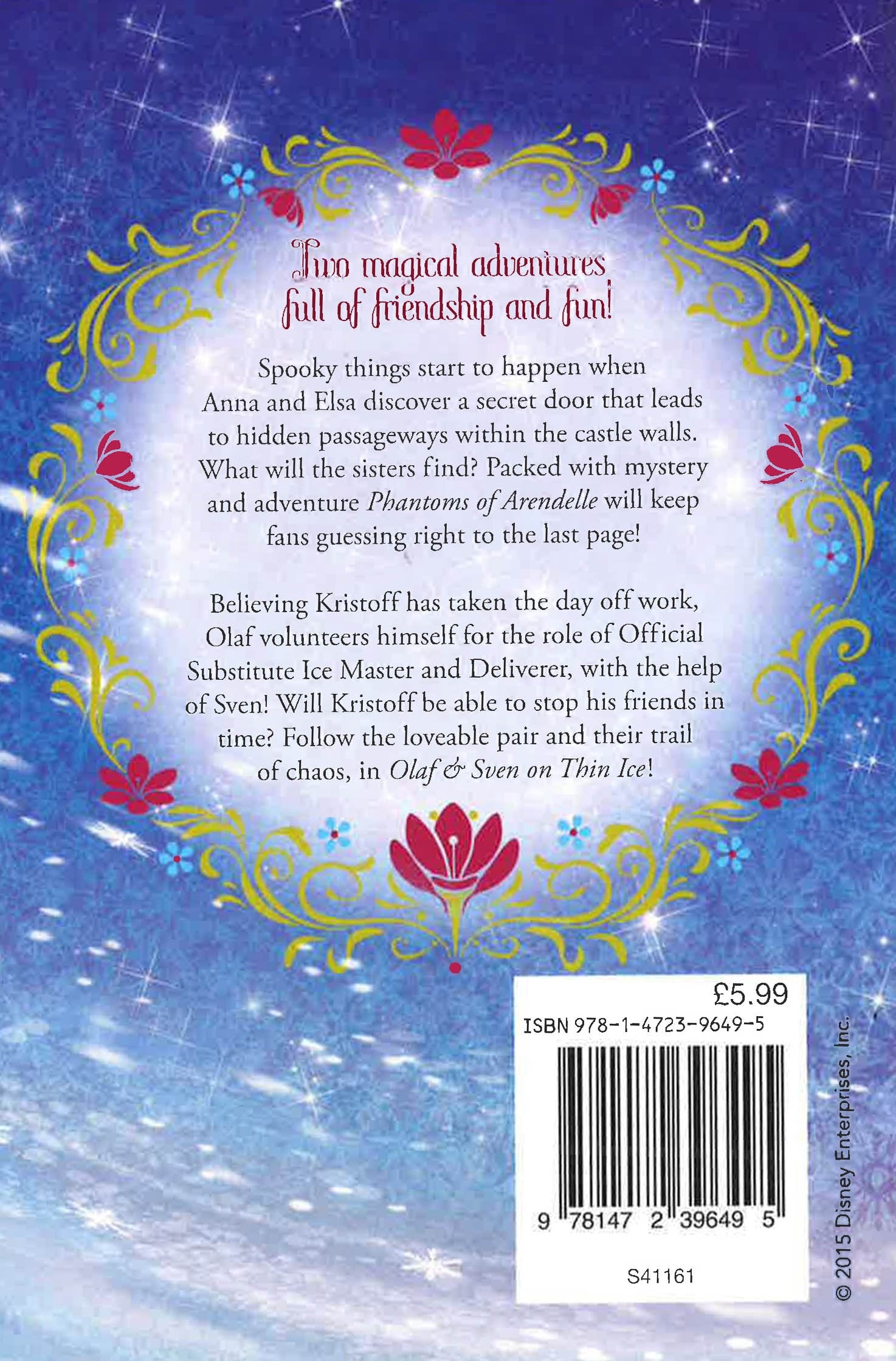Have you ever wondered what life in Arendelle is like after Elsa's love thawed Anna's frozen heart? This beautiful storybook contains two tales of adventure featuring your favourite characters from Disney's successful movie, Frozen. The first story, Phantoms of Arendelle, follows the story of Anna as she tries to distract Elsa from a gala being planned in her honour. Anna fills her schedule with fun bonding activities. But what starts as a distraction turns into an adventure when they find a secret door leading to passageways within the castle walls. As they explore the narrow passages and sealed-off rooms, spooky things start to happen. But what could be causing all these strange events? With Elsa's powers and Anna's ingenuity on their side, they're more than a match for whatever they find! Packed with humor and heart, Phantoms of Arendelle will keep readers guessing right up until the last page. The second story, Olaf & Sven on Thin Ice, features Kristoff, Sven and Olaf! As the Official Arendelle Ice Master and Deliverer, Kristoff never misses a day of work. But while he's getting ready one day, Olaf overhears him talking to Anna and thinks he's decided to take the day off.Olaf quickly runs outside to tell Sven! "I have the best news ever! I am going to the be the Official Substitute Ice Master and Deliverer for the day! And you are going to help me!" he says confidently. There's no stopping Olaf, who is now proudly telling everyone in the kingdom the good news. By the time Kristoff heads outside to meet up with Sven, Olaf and the trusty reindeer are long gone for their work adventure! Thankfully, Kristoff can follow their tracks - and their trail of chaos! Join in on the fun and enjoy all the goofy moments with this lovable snowman and kind-hearted reindeer. Filled with fun, action, friendship and adventure, this delightful storybook will be enjoyed again and again.
