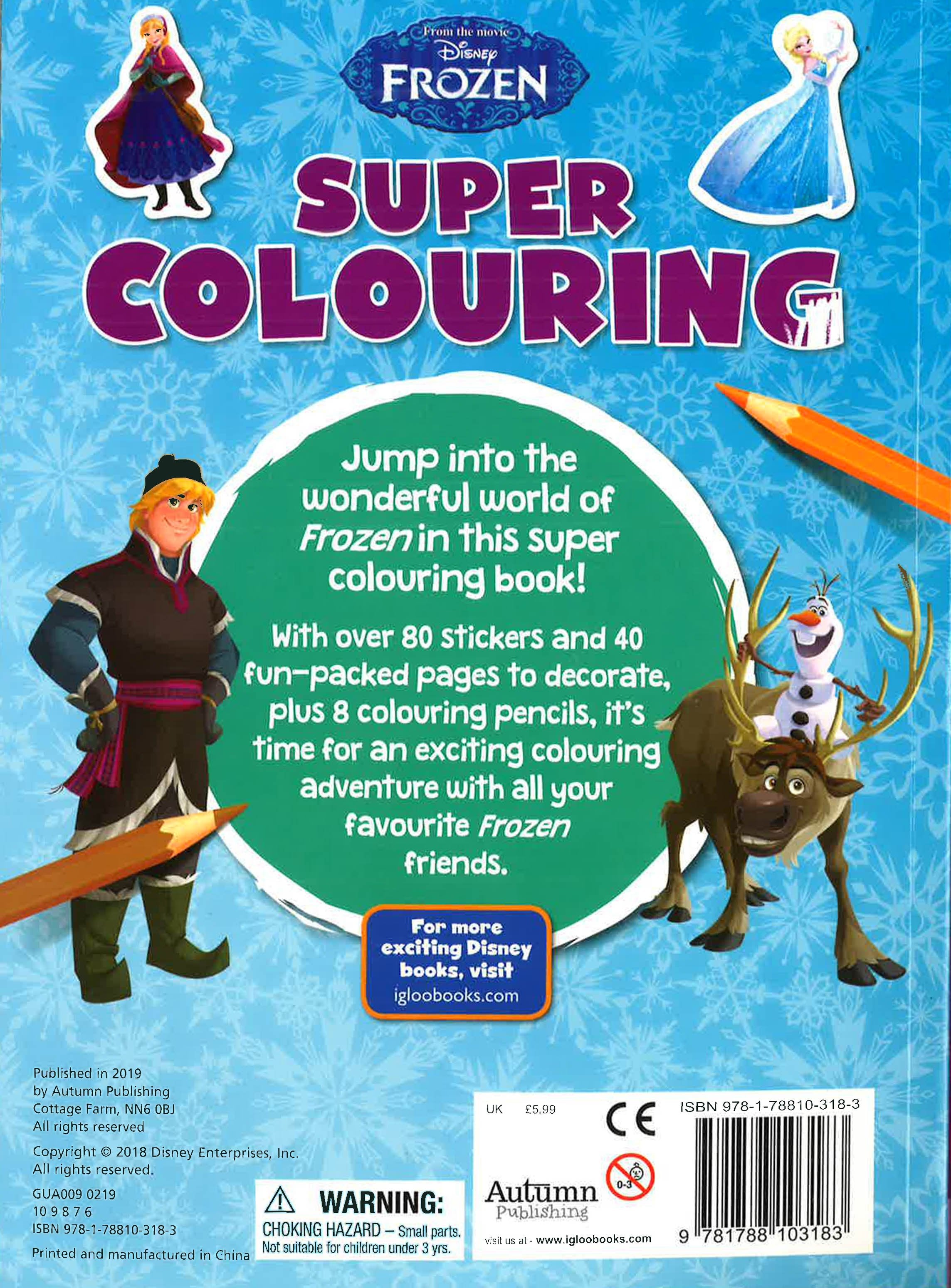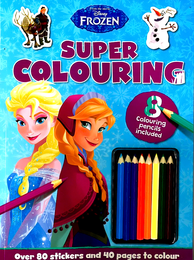 Jump into the wonderful world of Frozen in this super colouring book! With over 80 stickers and 40 fun-packed pages to decorate, plus 8 colouring pencils, it’s time for an exciting colouring adventure with all your favourite Frozen friends.