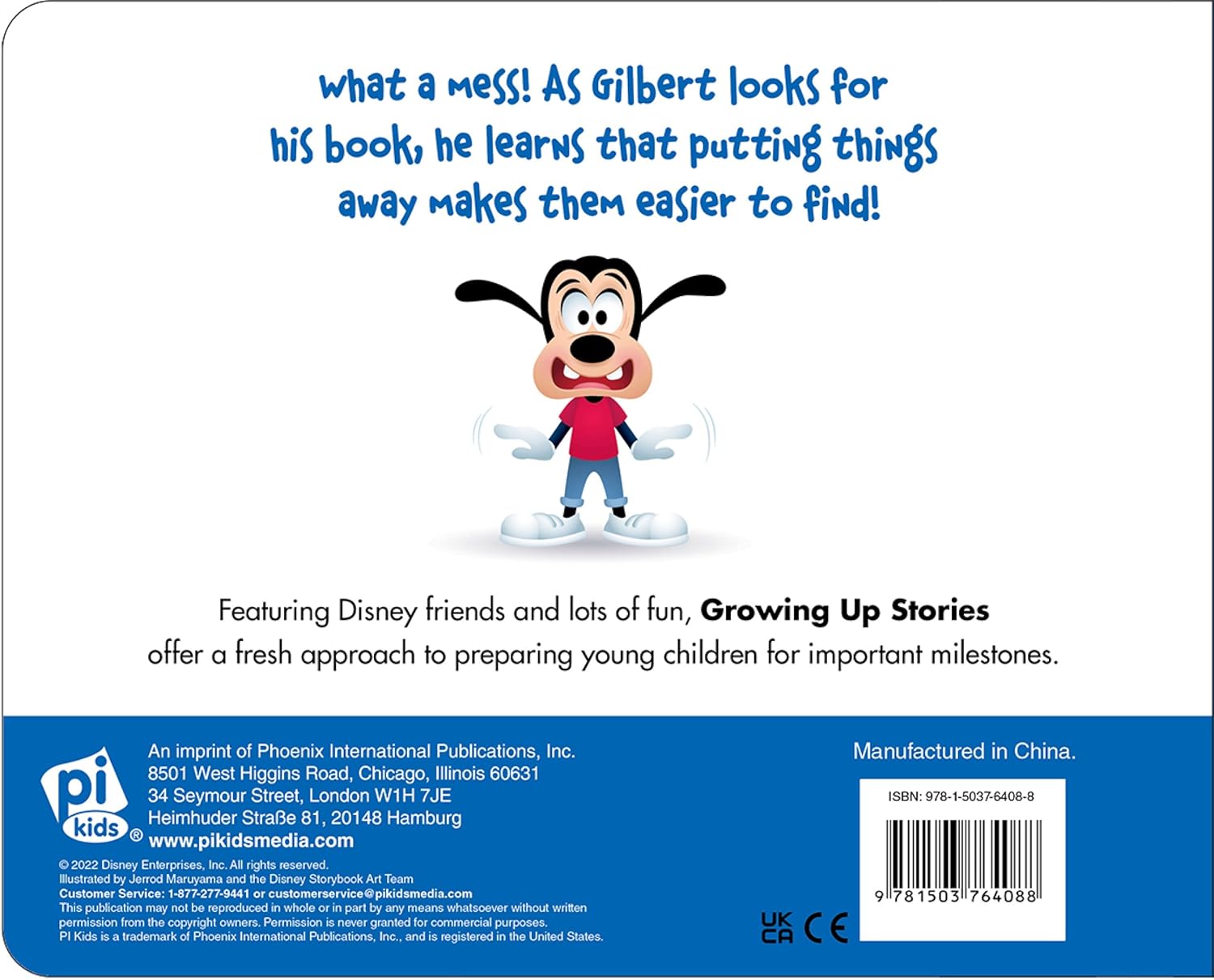 What a mess! As Gilbert looks for his book, he learns that keeping things in their place makes them easier to find the next time! Featuring Disney friends and lots of fun, Growing Up Stories offer a fresh approach to preparing children for important milestones.