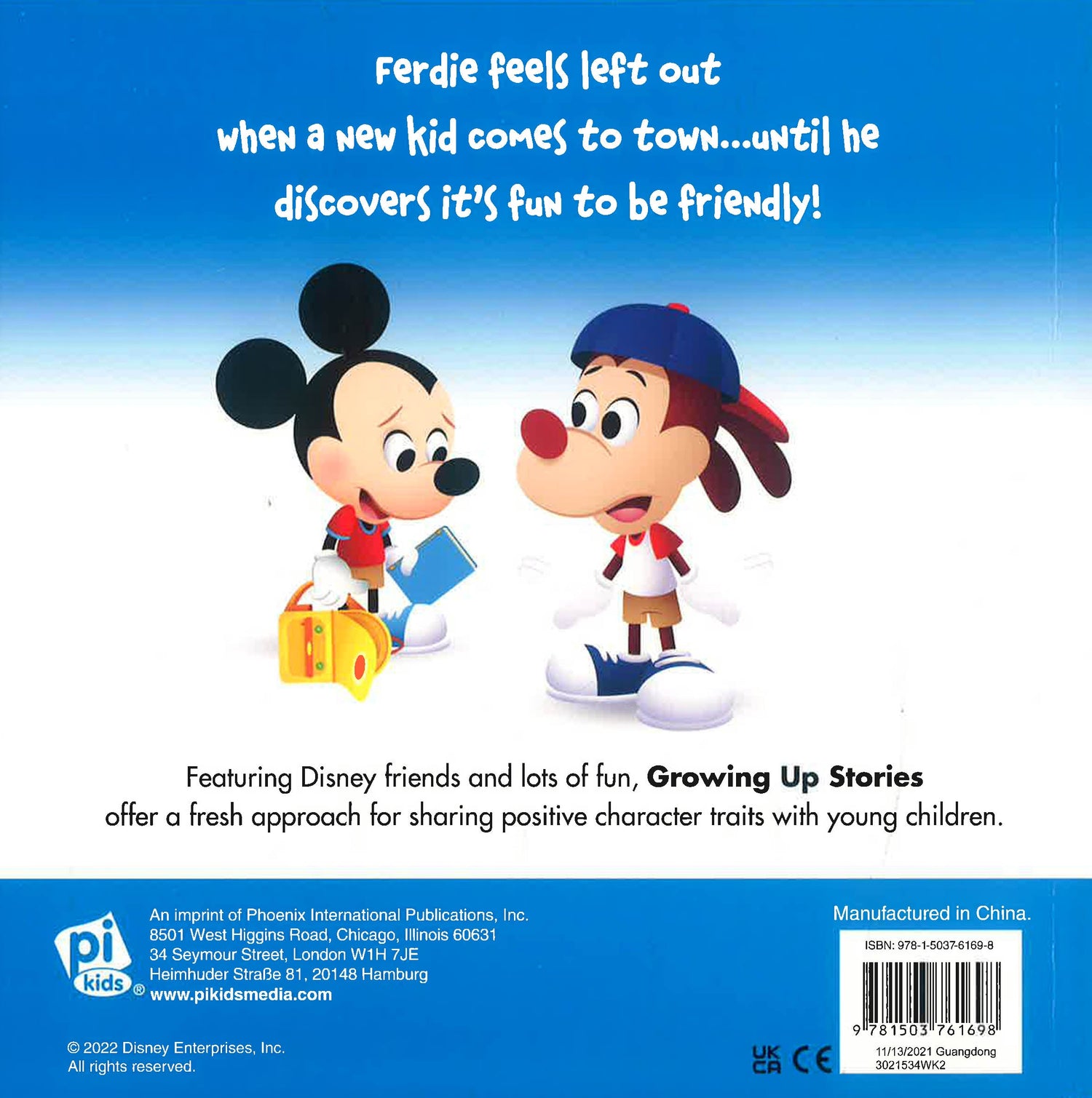 Mickey's nephew Ferdie feels left out when a new kid comes to town...until he discovers it's fun to be friendly! Featuring Disney friends and lots of fun, Growing Up Stories offer a fresh approach for sharing positive character traits with young children. Stickers included!