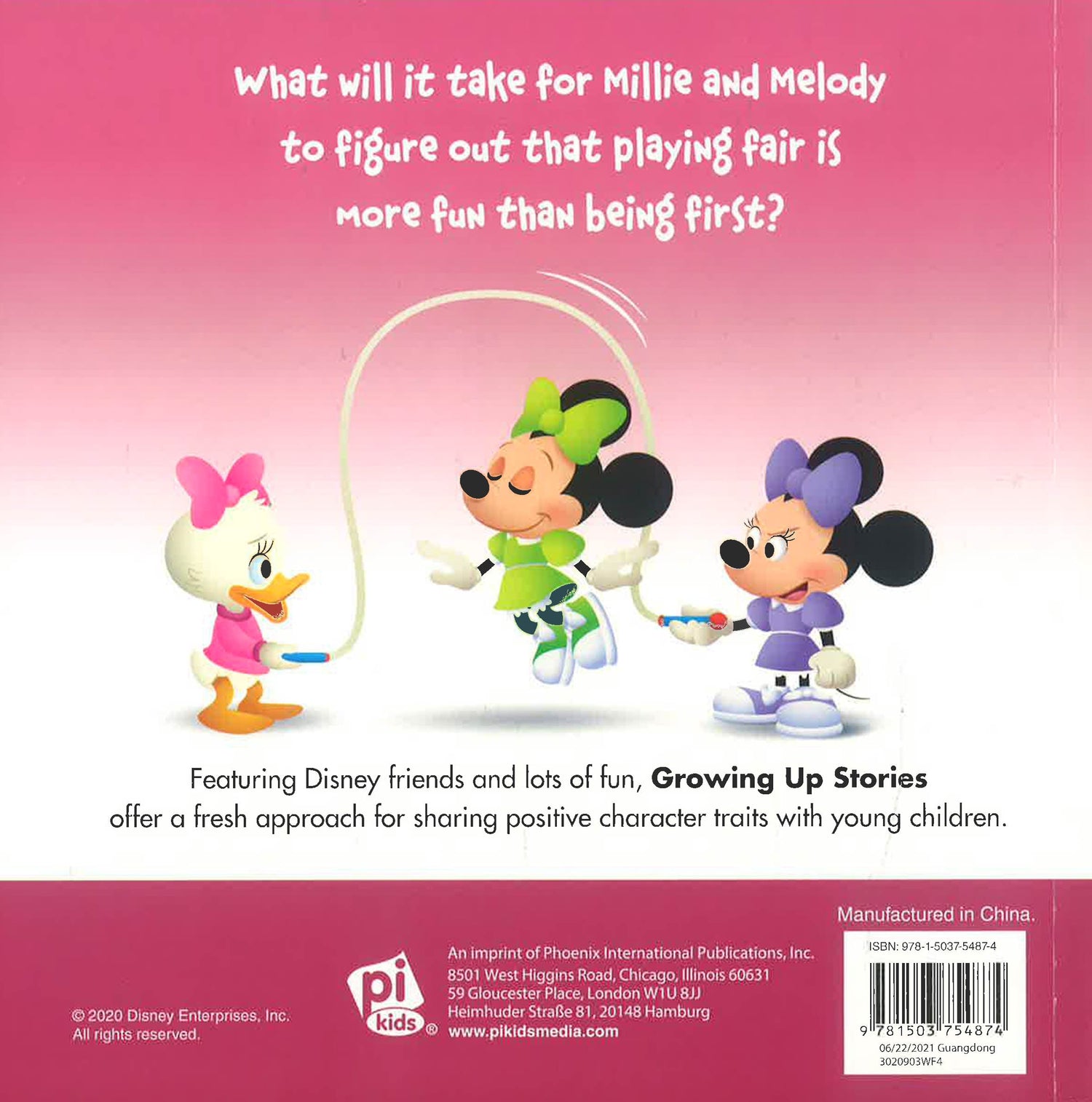 What will it take for Minnie's nieces Millie and Melody to figure out that playing fair is more fun than being first? Featuring classic Disney friends and lots of fun, Growing Up Stories offer a fresh approach for sharing positive character traits with young children. Stickers included!