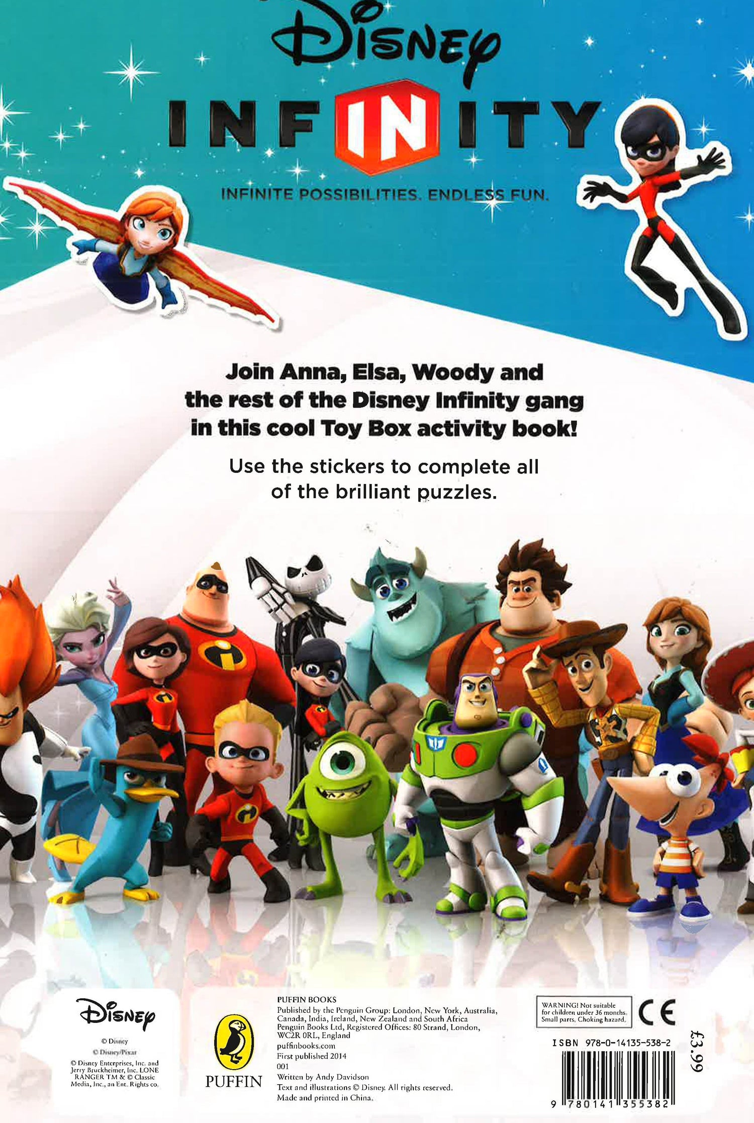 Elsa and Anna invite you to explore the infinite mash-up possibilities of the Toy Box with them in this fun Disney Infinity sticker activity book. Use stickers of your favourite Disney heroes and villains to complete the activities and build your own Toy Box scenes.