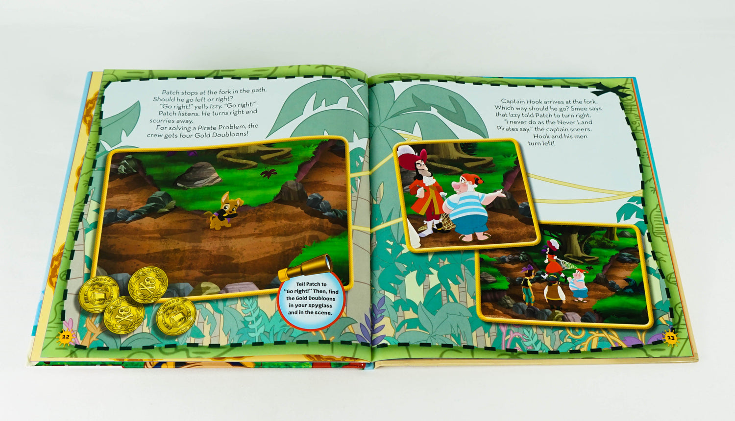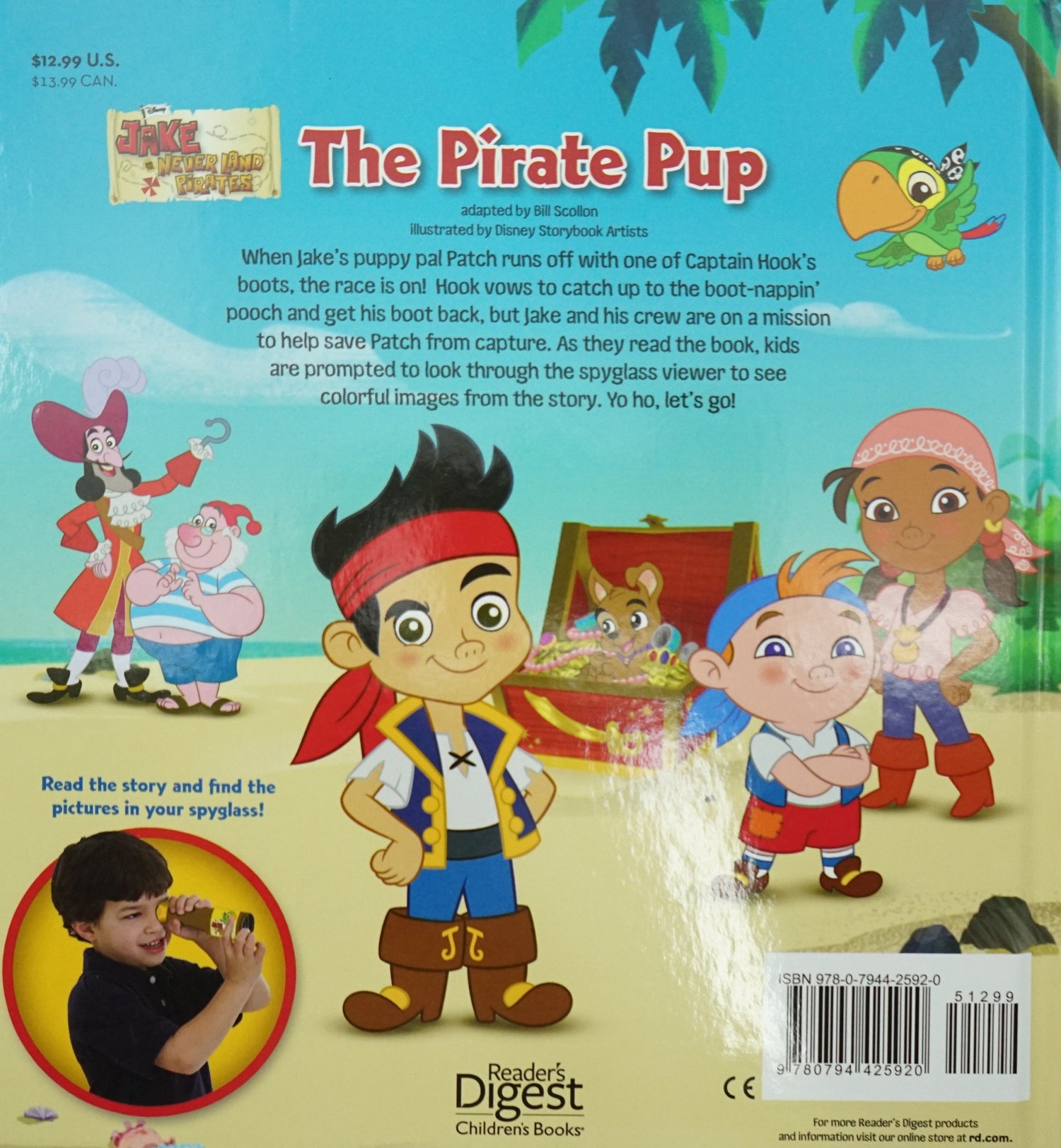 Ahoy, Matey! Join Jake and his friends in this action-packed adventure that comes with a spyglass viewer pre loaded with six images that work with the story! When Jake's puppy pal Patch runs off with one of Captain Hook's boots, the race is on! Hook vows to catch up to the boot-nappin' pooch and get his boot back, but Jake and his crew are on a mission to help save Patch from capture. As they read the book, kids are prompted to look through the spyglass viewer to see colorful images from the story. Yo ho, let's go!