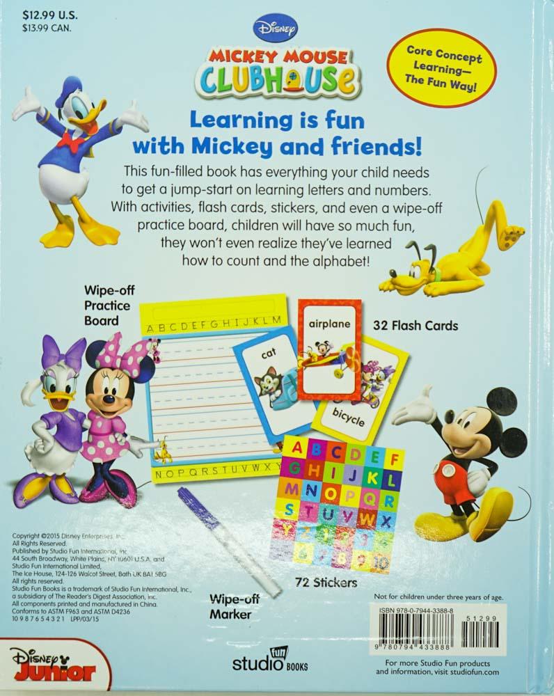 Learning letters and numbers is fun with this book featuring Disney Mickey Mouse Clubhouse characters.