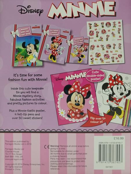 Its time for some fashion fun with Minnie! Inside this cute keepsake tin you will find a Minnie mystery story, fabulous fashion activities and pretty pictures to colour. Plus a Minnie-tastic poster, 4 felt-tip pens and over 50 sweet stickers!