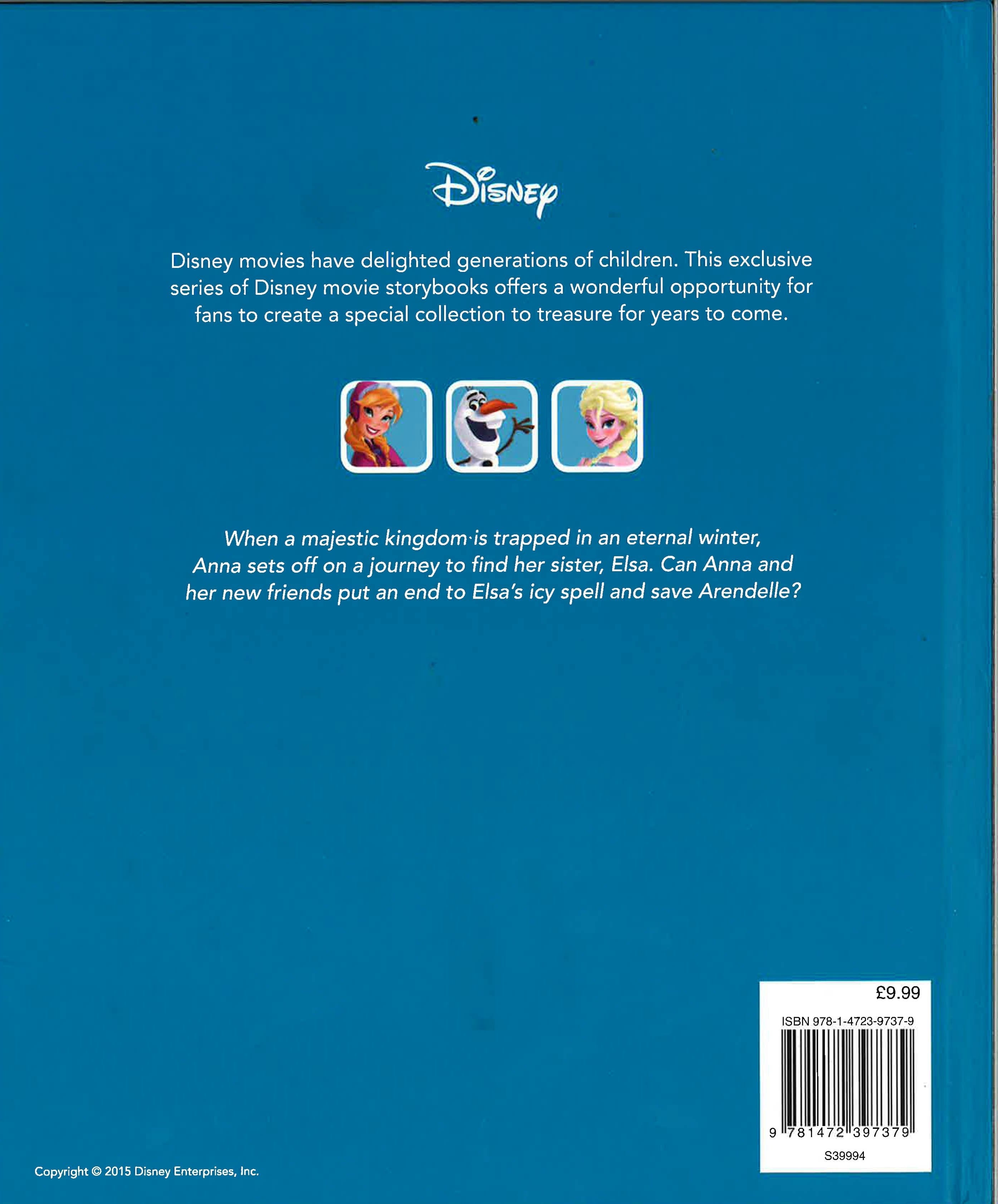 When a majestic kingdom is trapped in an eternal winter, Anna sets off on a journey to find her sister, Elsa. Along the way, Anna joins forces with a mountaineer, his reindeer sidekick and snowman. Can Anna and her new friends put an end to Elsa's icy spell and save Arendelle? Enjoy this exclusive large size Disney movie storybook, featuring beautifully illustrated pages fans can treasure for years to come.