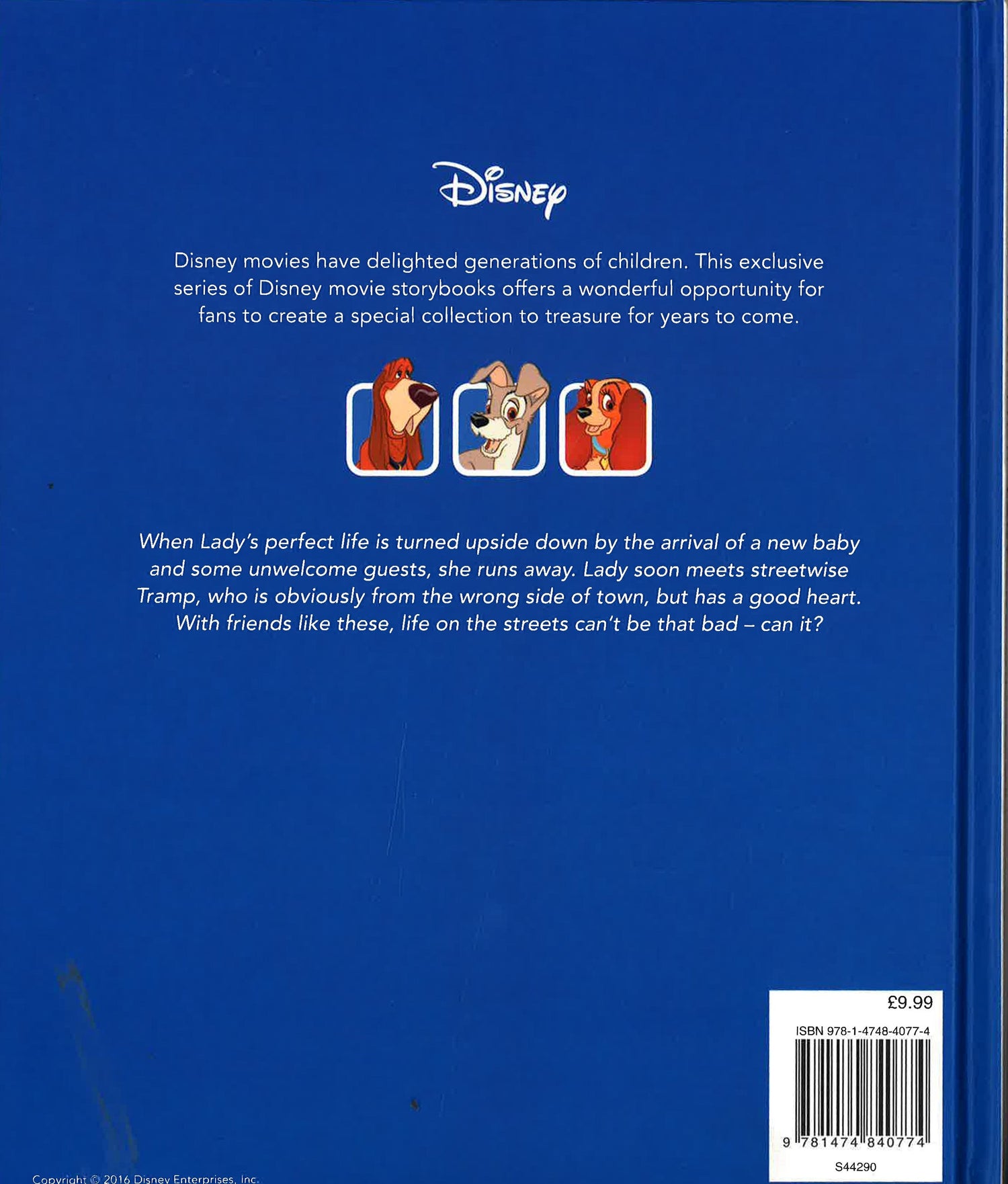 Relive Lady's fun adventures with Tramp and her new friends in this lovely Disney storybook.