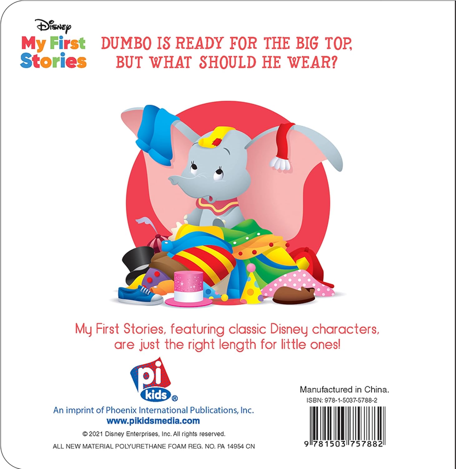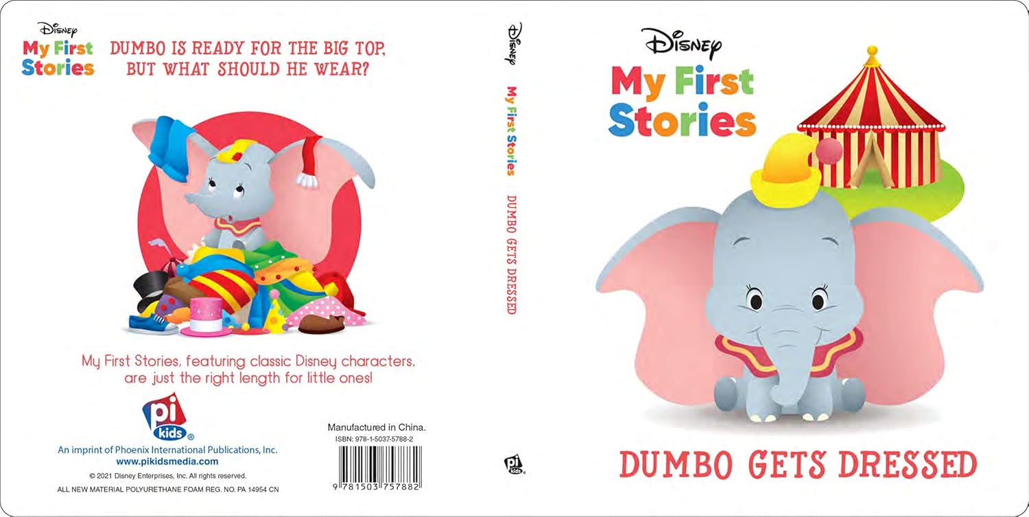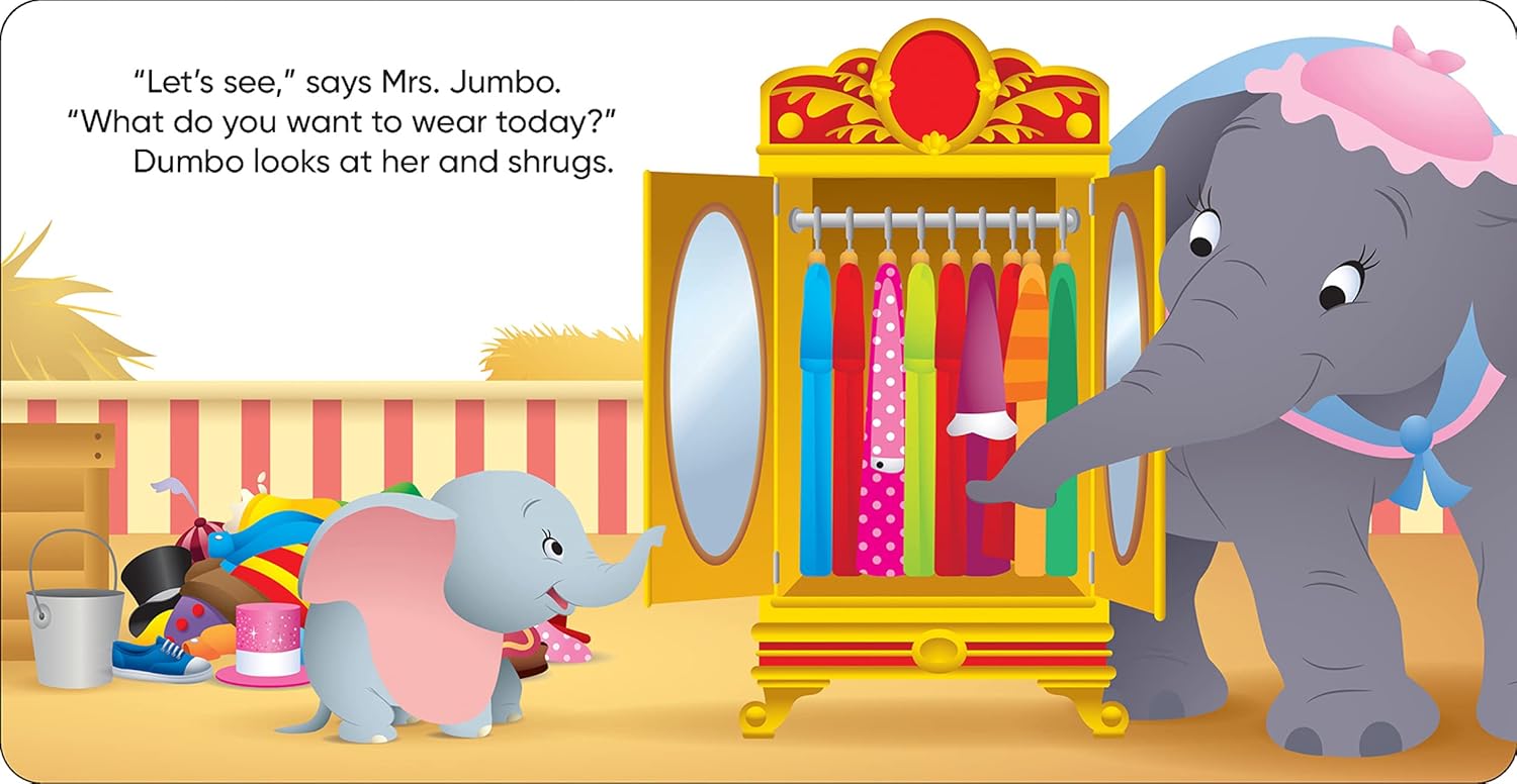 Dumbo is ready for his big-top debut, but what should he wear? My First Stories, featuring classic Disney characters, are just the right length for little ones!