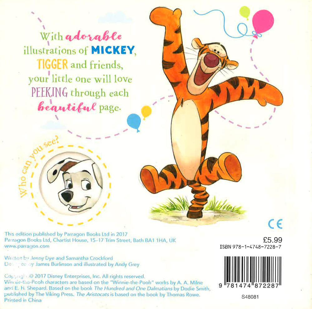 Play baby's favourite game with this sweet peek-a-boo board book, Disney Peek and Play. Peek through holes to discover surprises on each page, and read the simple, fun and gentle rhyming text aloud. With adorable illustrations of Mickey, Tigger and Friends, your little one will love peeking through each beautiful page.