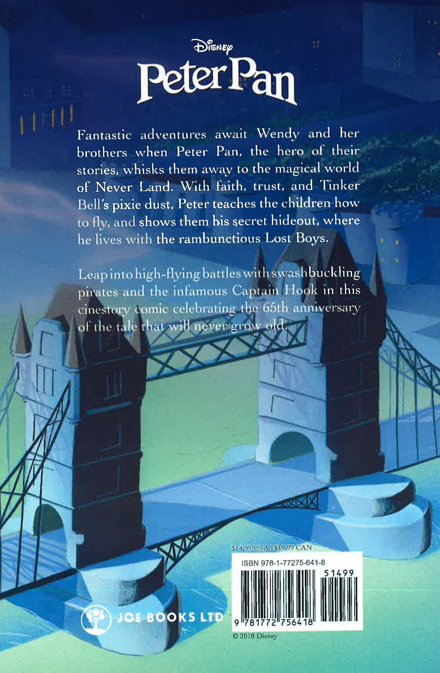 Fantastic adventures await Wendy and her brothers when Peter Pan, the hero of their stories, whisks them away to the magical world of Never Land. With faith, trust, and Tinker Bell's pixie dust, Peter teaches the children how to fly and shows them his secret hideout, where he lives with the rambunctious Lost Boys. Leap into high-flying battles with swashbuckling pirates and the infamous Captain Hook in this cinestory comic celebrating the 65th anniversary of the tale that will never grow old.