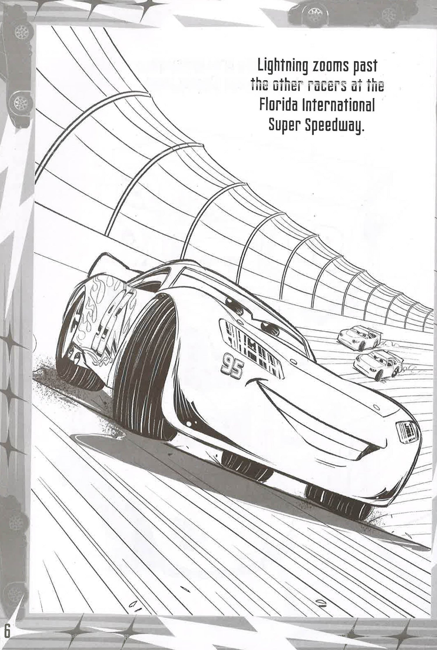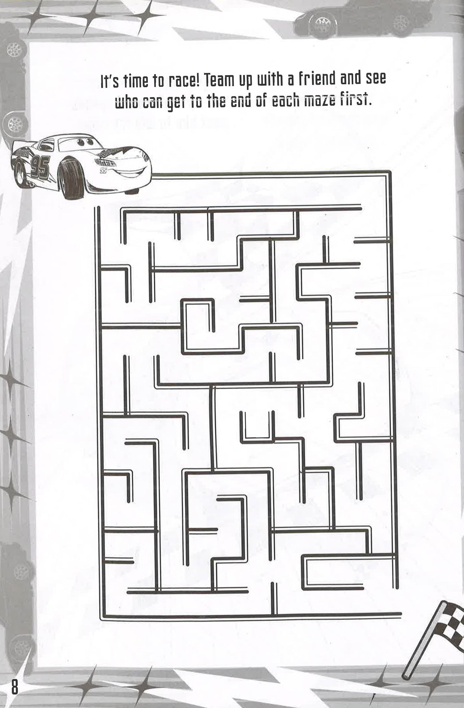 Join the Legendary Lighting McQueen as he races to keep his champion title. Race a friend through the maze, make a pit stop with Guido and Luigi, colour in Lighting's racing rival Jackson Storm and much more. Then use your awesome crayons to have some action-packed fun!