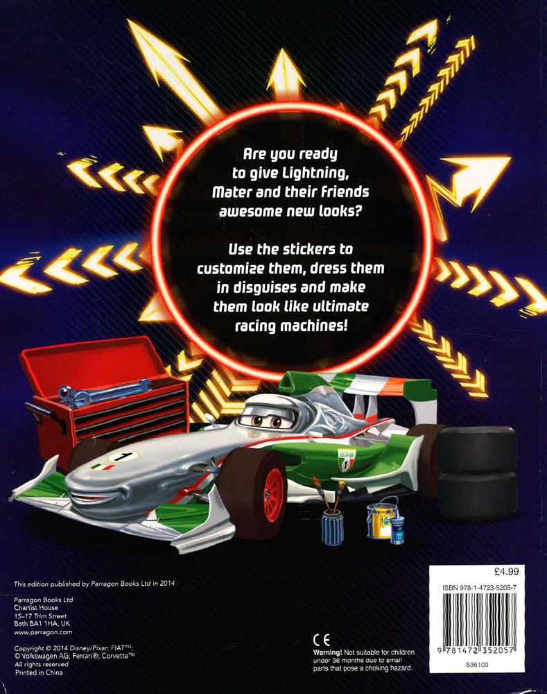 Dress up Lightning, Mater and the racing champions of the world with over 100 stickers. Also includes fun activities with the Radiator Springs gang.