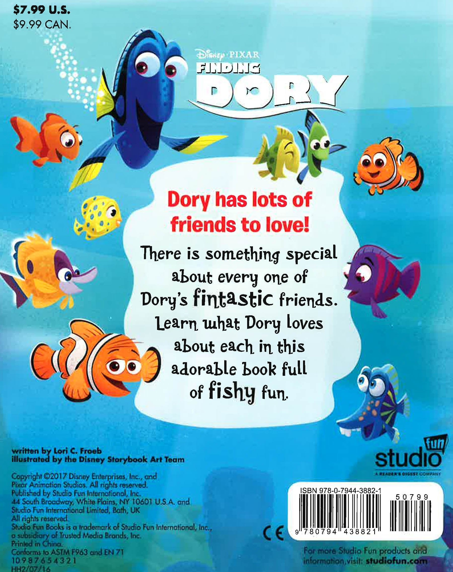 Perfect for Valentine's Day! Dory has lots of friends to love! There is something special about every one of Dory's FINTASTIC friends. Learn what Dory loves about each in this adorable book full of fishy fun.