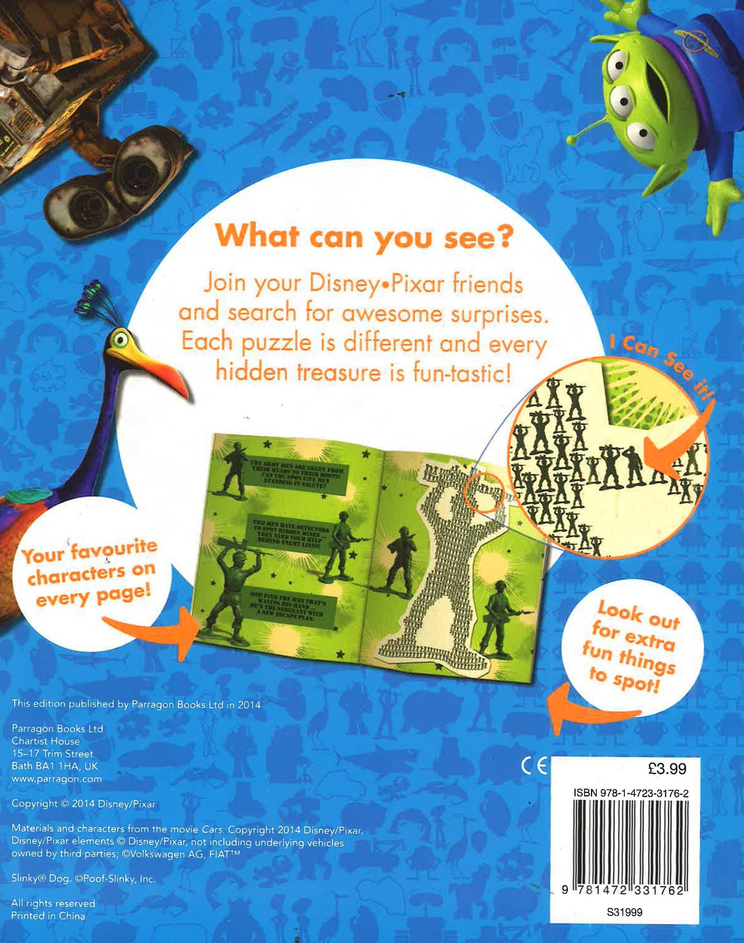 Join the Disney/Pixar characters in their exciting world and search for hidden surprises. In this unique search and find book, there are hidden treasures among awesome picture puzzles on every page. The book comes with reward stickers to congratulate clever little spotters!