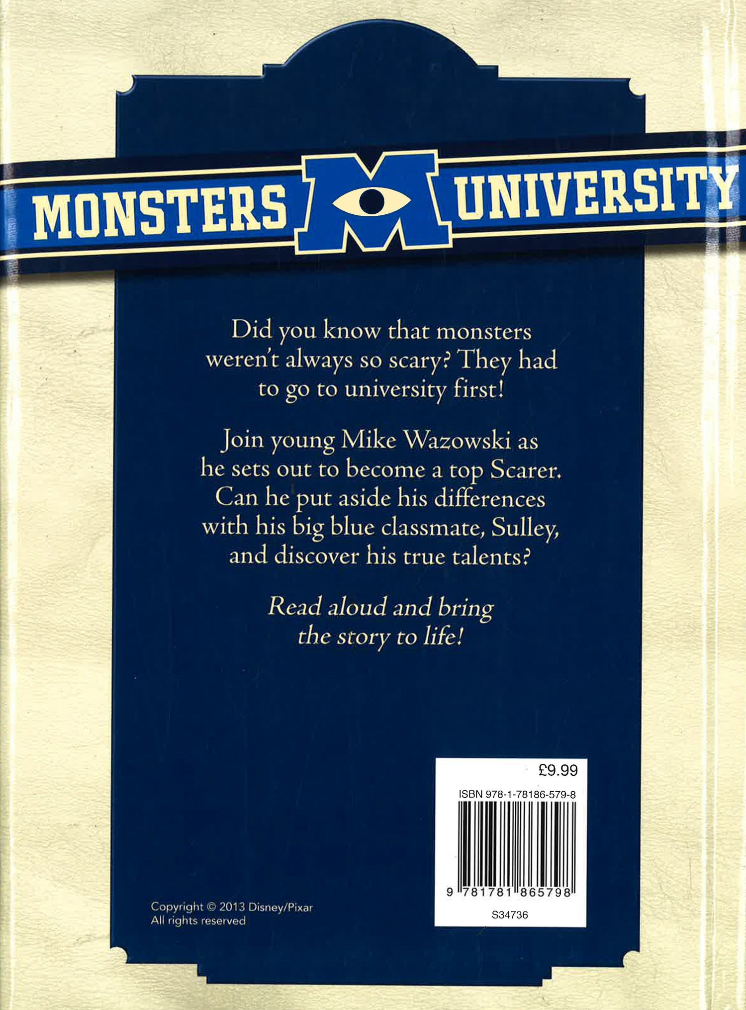 Did you know that monsters weren't always so scary? They had to go to university first! Join young Mike Wazowski as he sets out to become a top Scarer. Can he put aside his differences with his big blue classmate, Sulley, and discover his true talents? Read Disney Pixar Monsters University aloud and bring the story to life!