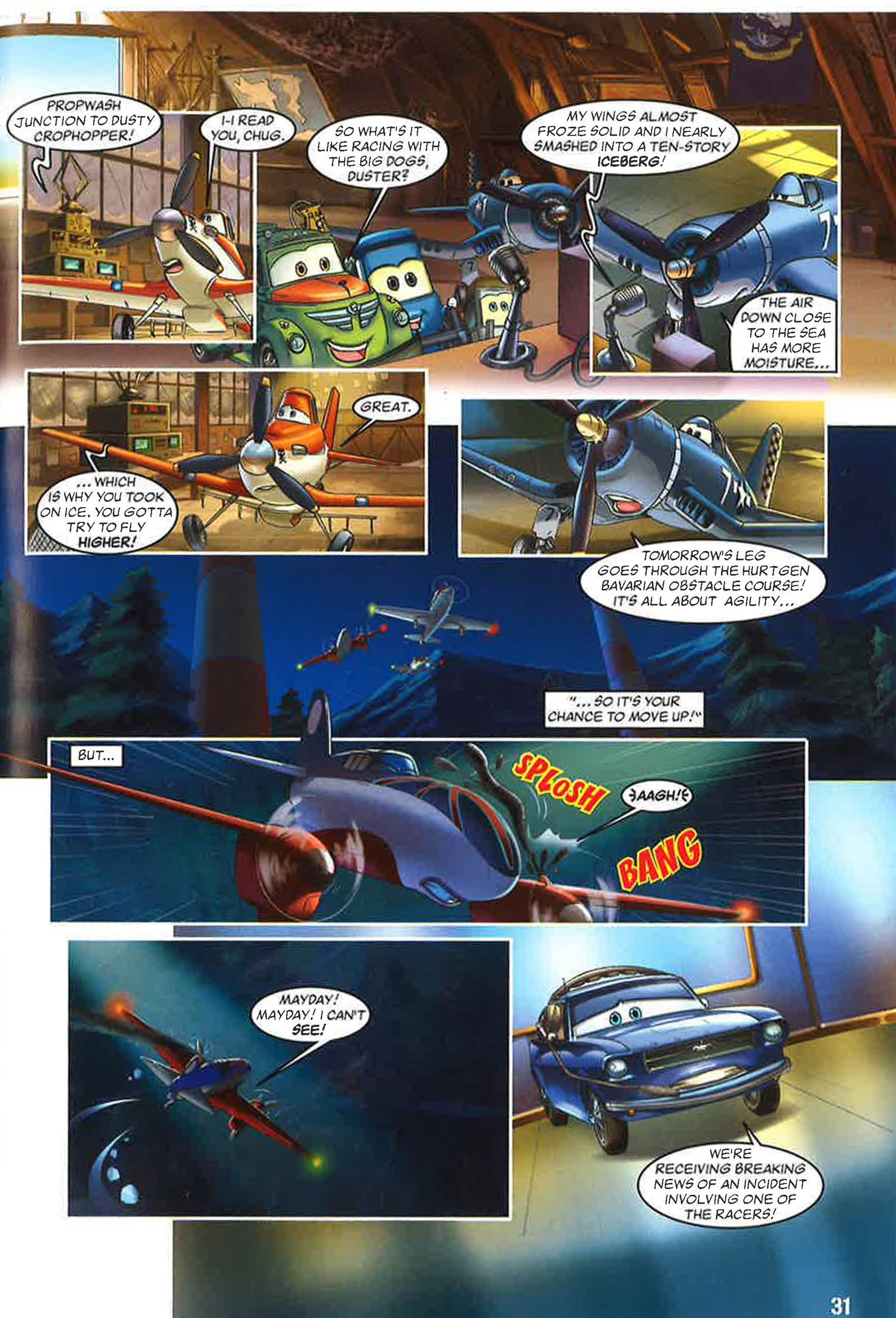"Planes" -the comics adaptation of the first hit film in the franchise! Made as a slow, low-flying cropduster in a small rural town, Dusty Crophopper has always dreamed of becoming a racer and winning Wings Around the Globe, the most prestigious plane racing competition in the world. One day, against all odds, Dusty manages to qualify for the race! However, in order to win, Dusty will have to overcome even greater obstacles -- from deceptive opponents to his own fears! Luckily, he has friends in the ace mechanic Dottie and his mentor Skipper Riley, an old navy plane with a secret past. They'll all need to work together to make Dusty's dreams come true!