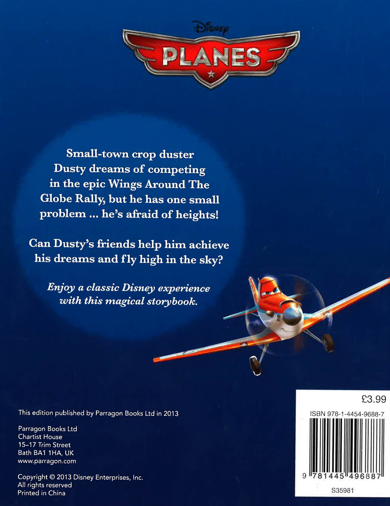Small-town crop duster Dusty dreams of competing in the epic Wings Around the Globe Rally, but he has one small problem ... he's afraid of heights! Can Dusty's friends help him achieve his dreams and fly high in the sky?