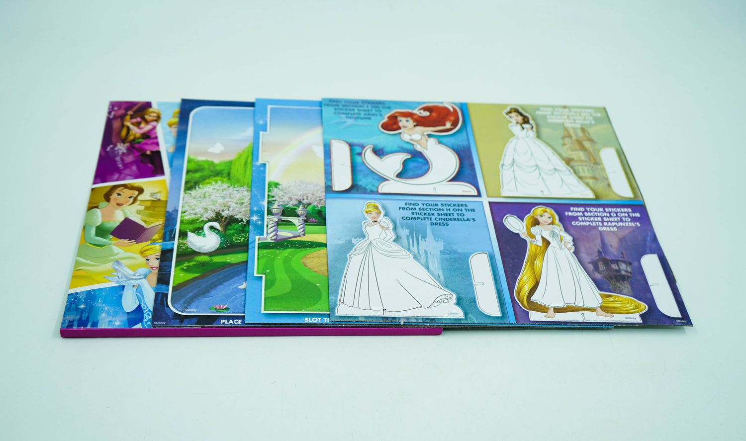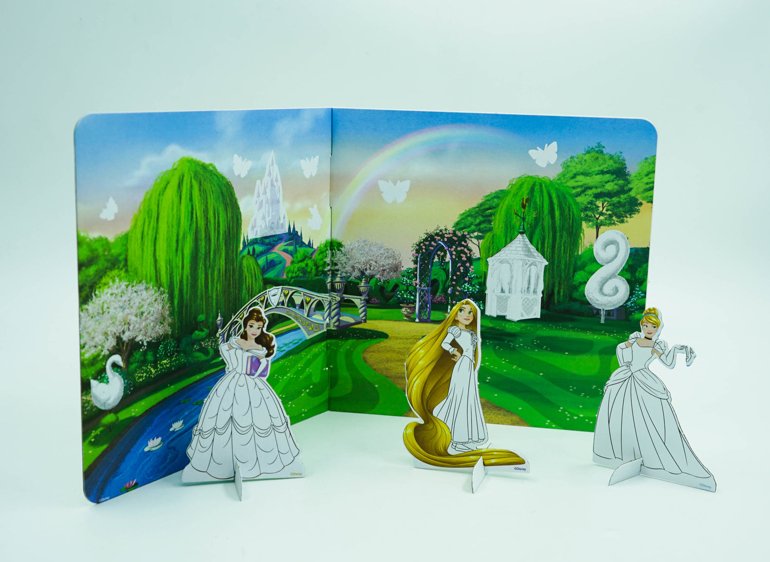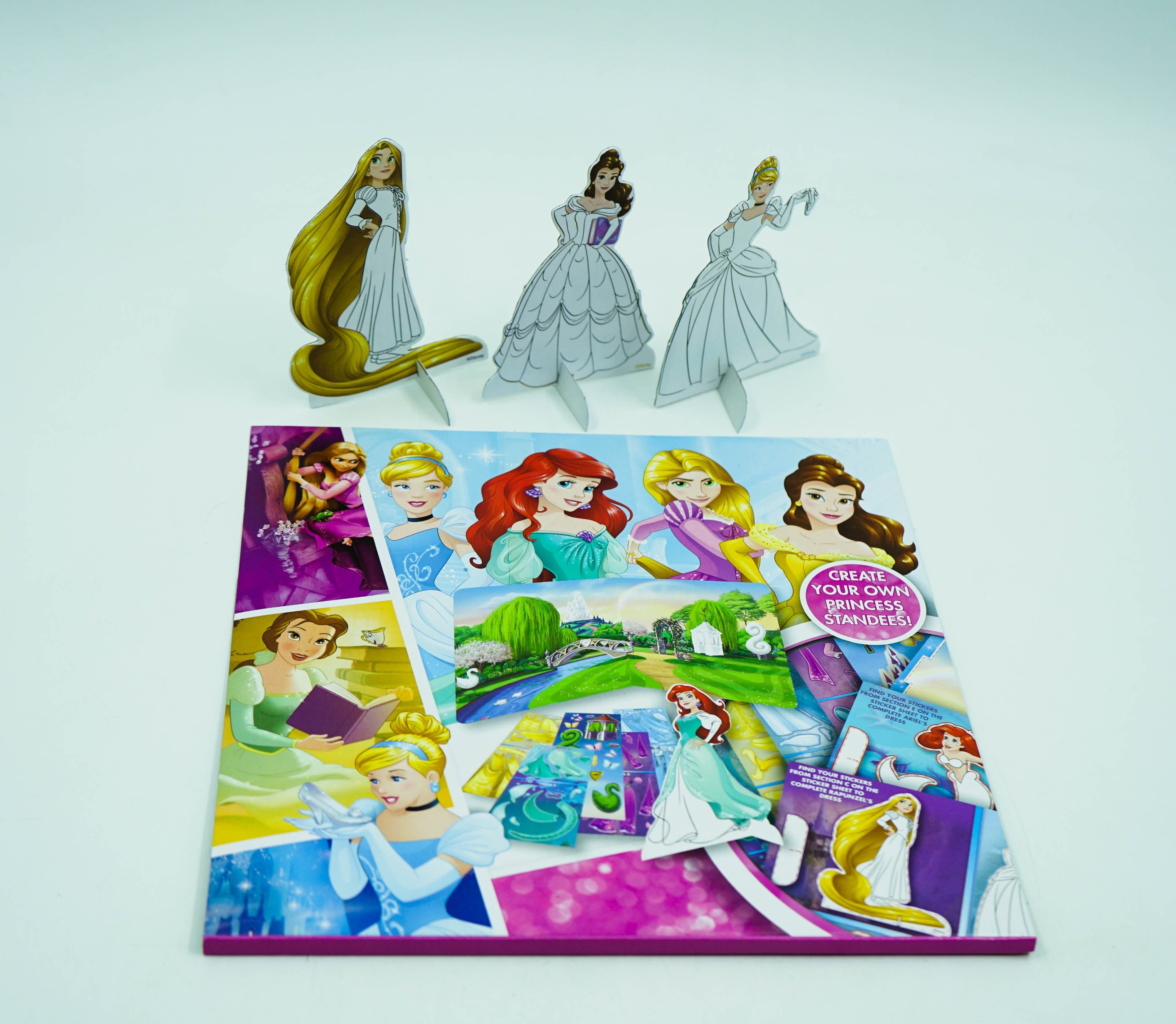 Create your own princess standees! Place the stickers in the right place to complete the princess dresses. This set contains 8 princess standees, 5 sticker sheets and1 create your own scene.