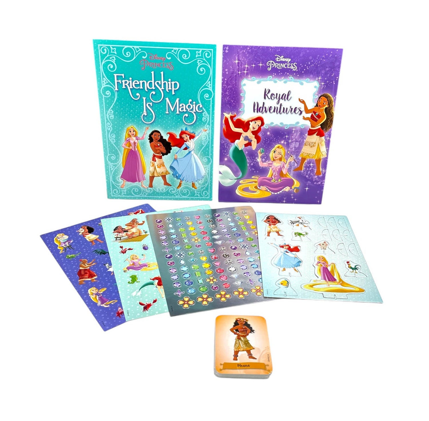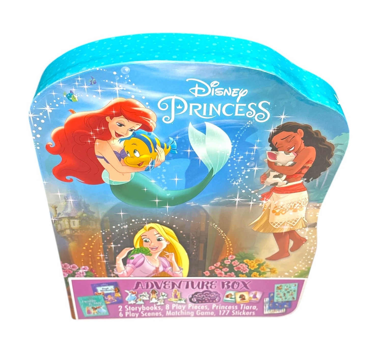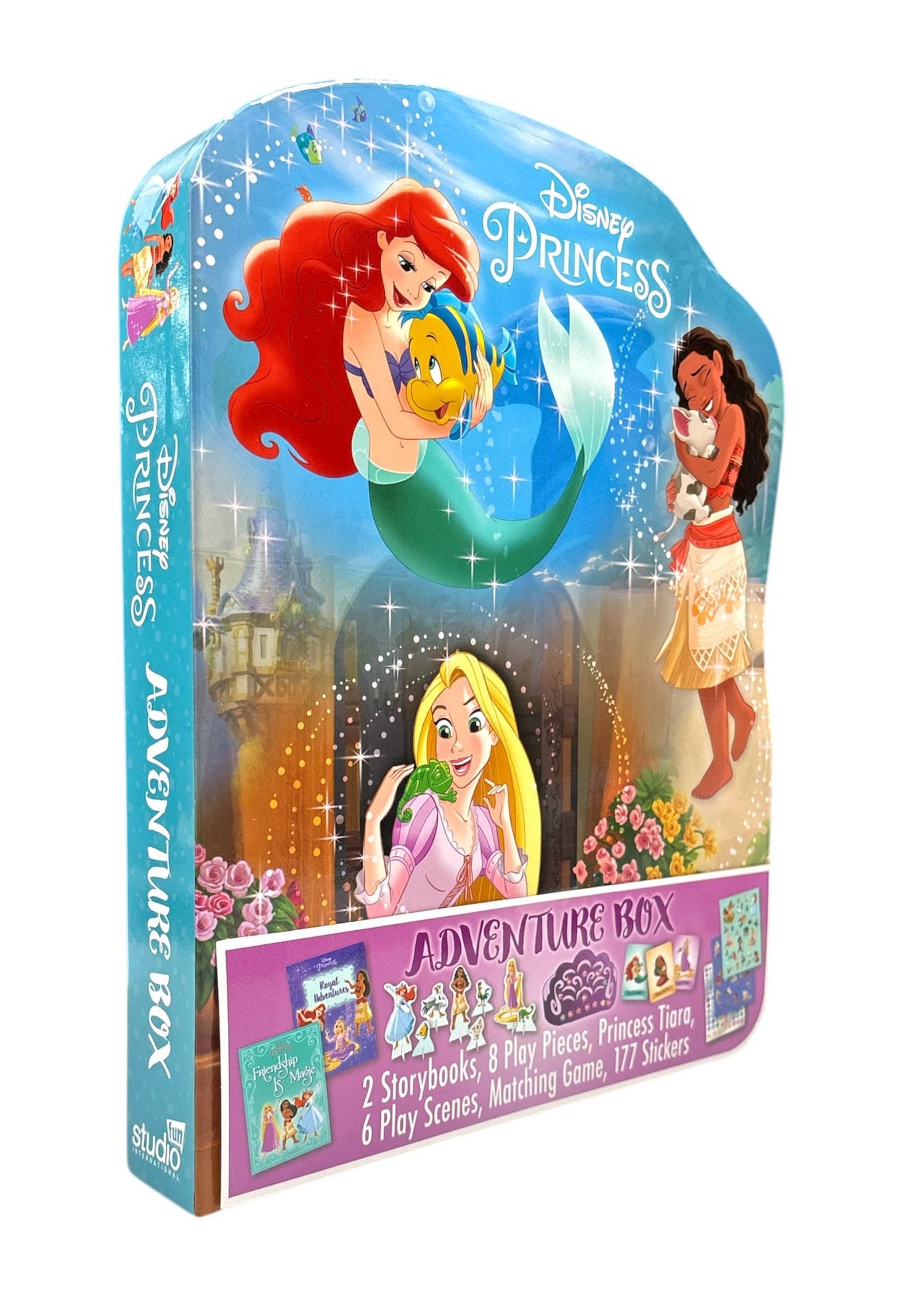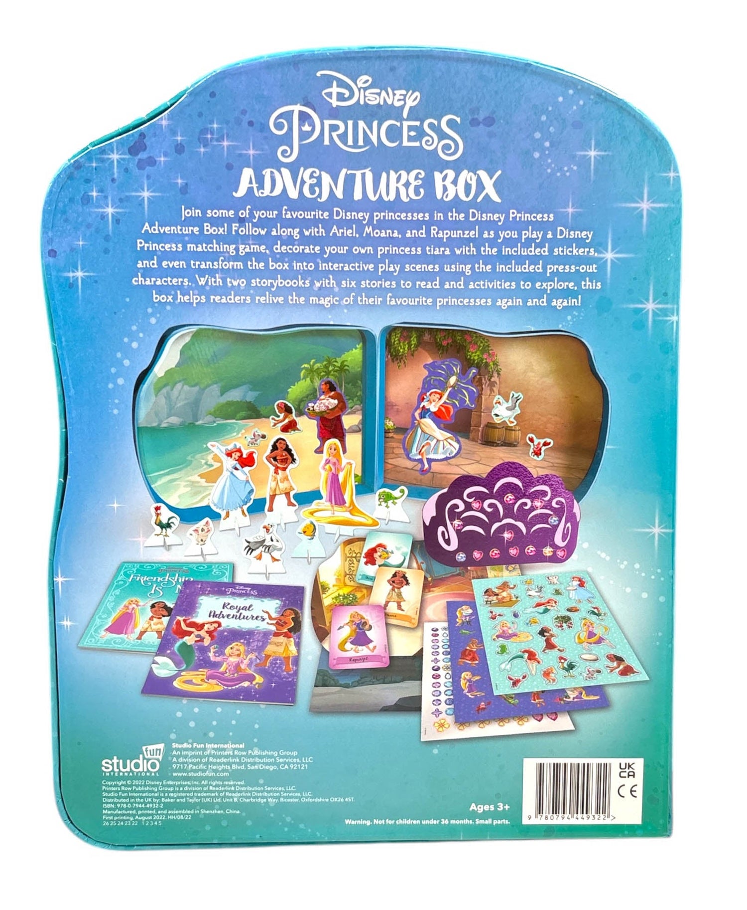 Join some of your favourite Disney princesses in the Disney Princess Adventure Box! Follow along with Ariel, Moana, and Rapunzel as you play a Disney Princess matching game, decorate your own princess tiara with the included stickers. and even transform the box into interactive play scenes using the included press-out characters. With two storybooks with six stories to read and activities to explore, this box helps readers relive the magic of their favourite princesses again and again!