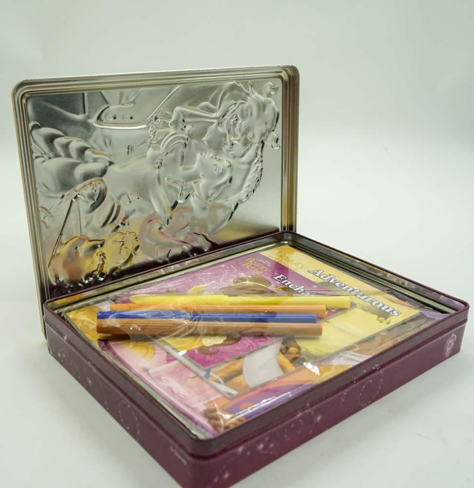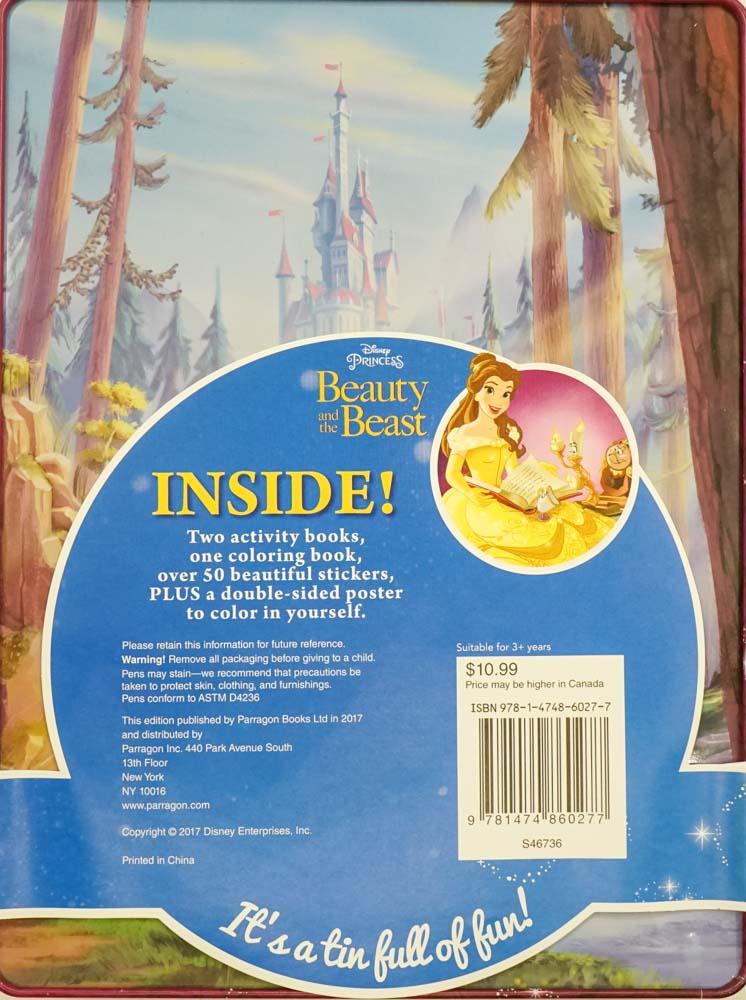 Join your favorite Disney Princess Belle for this Beauty and the Beast Collector's Tin. Inside this tin you'll discover an inspiring storybook, an enchanted activity book and an adventurous coloring book. Plus, there are 4 markers, a double-sided poster and over 50 stickers of Belle and her enchanted friends. It's a tin full of fun!