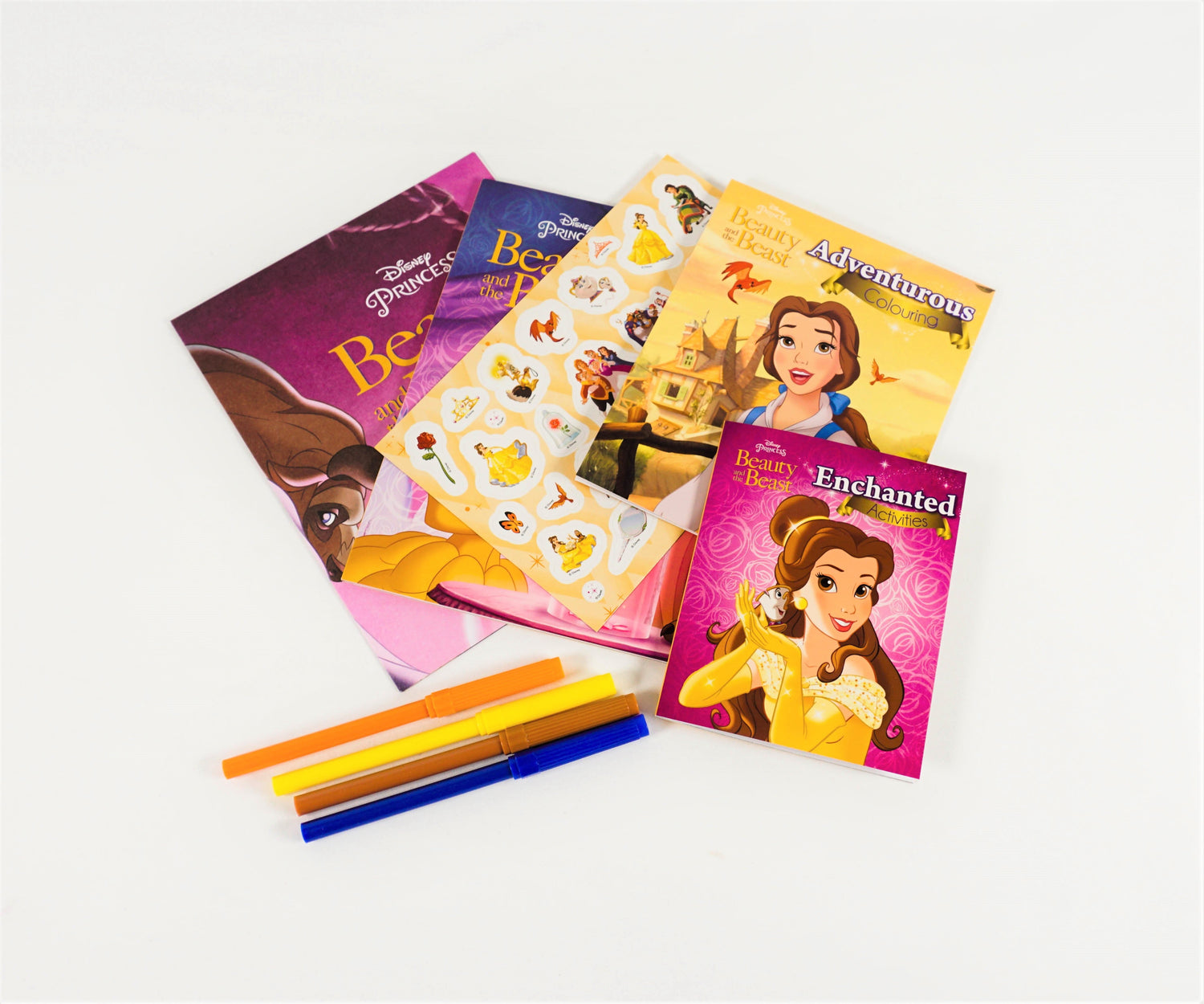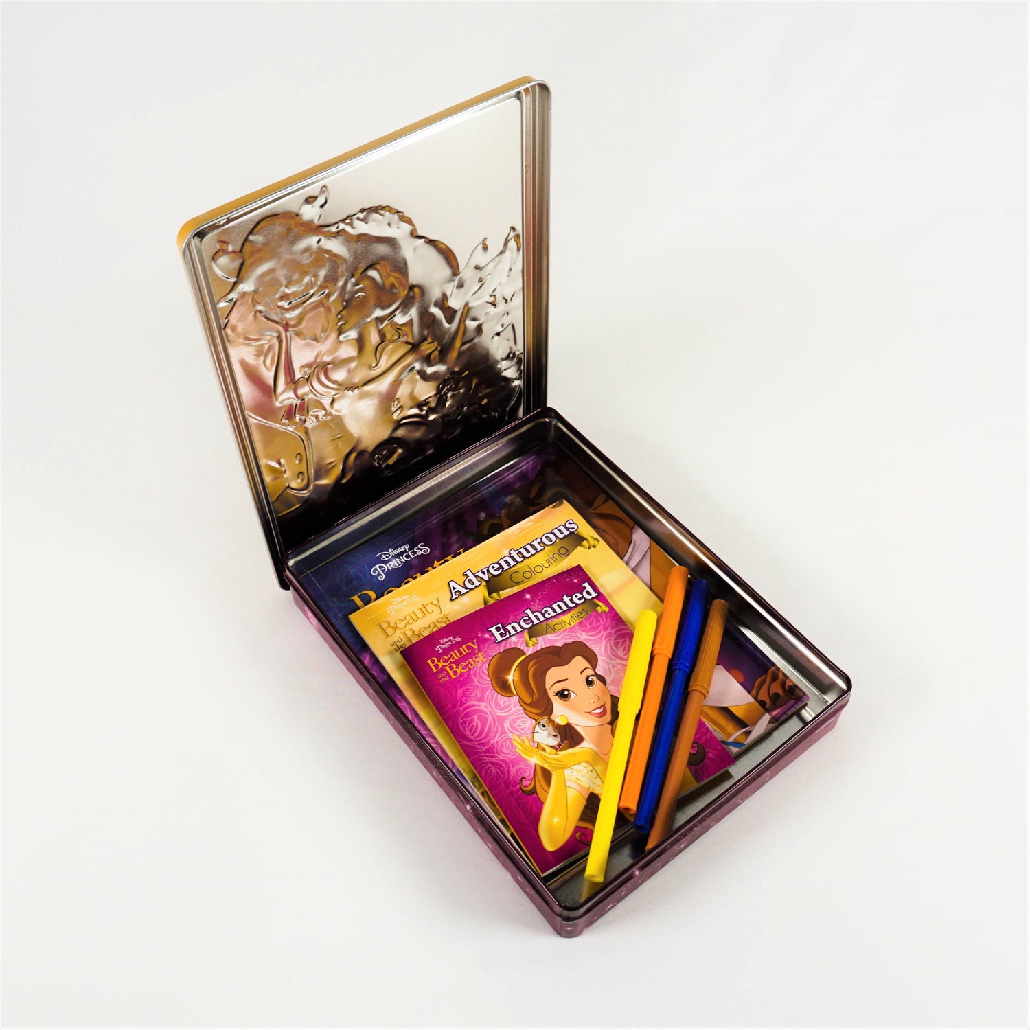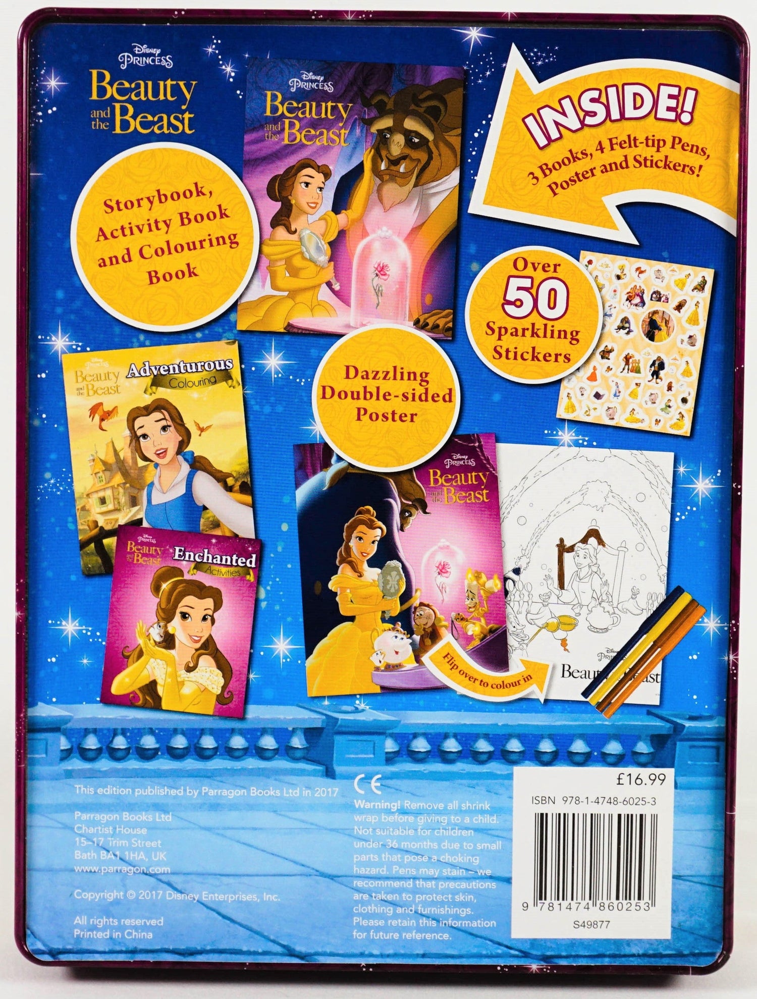 Join your favourite Disney Princess Belle for this Beauty and the Beast Happy Tin. Inside this tin you'll discover an inspiring storybook, an enchanted activity book and an adventurous colouring book. Plus, there are 4 coloured felt-tip pens, a double-sided poster and over 50 stickers of Belle and her enchanted friends.It's a tin full of fun!