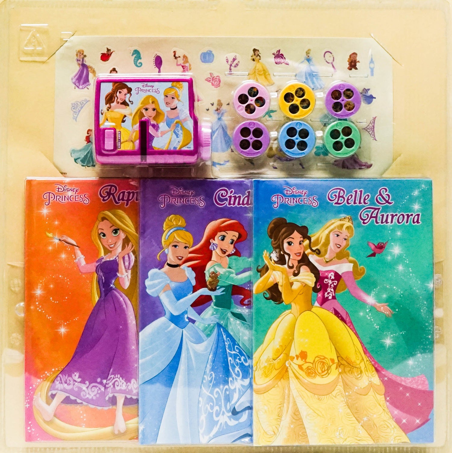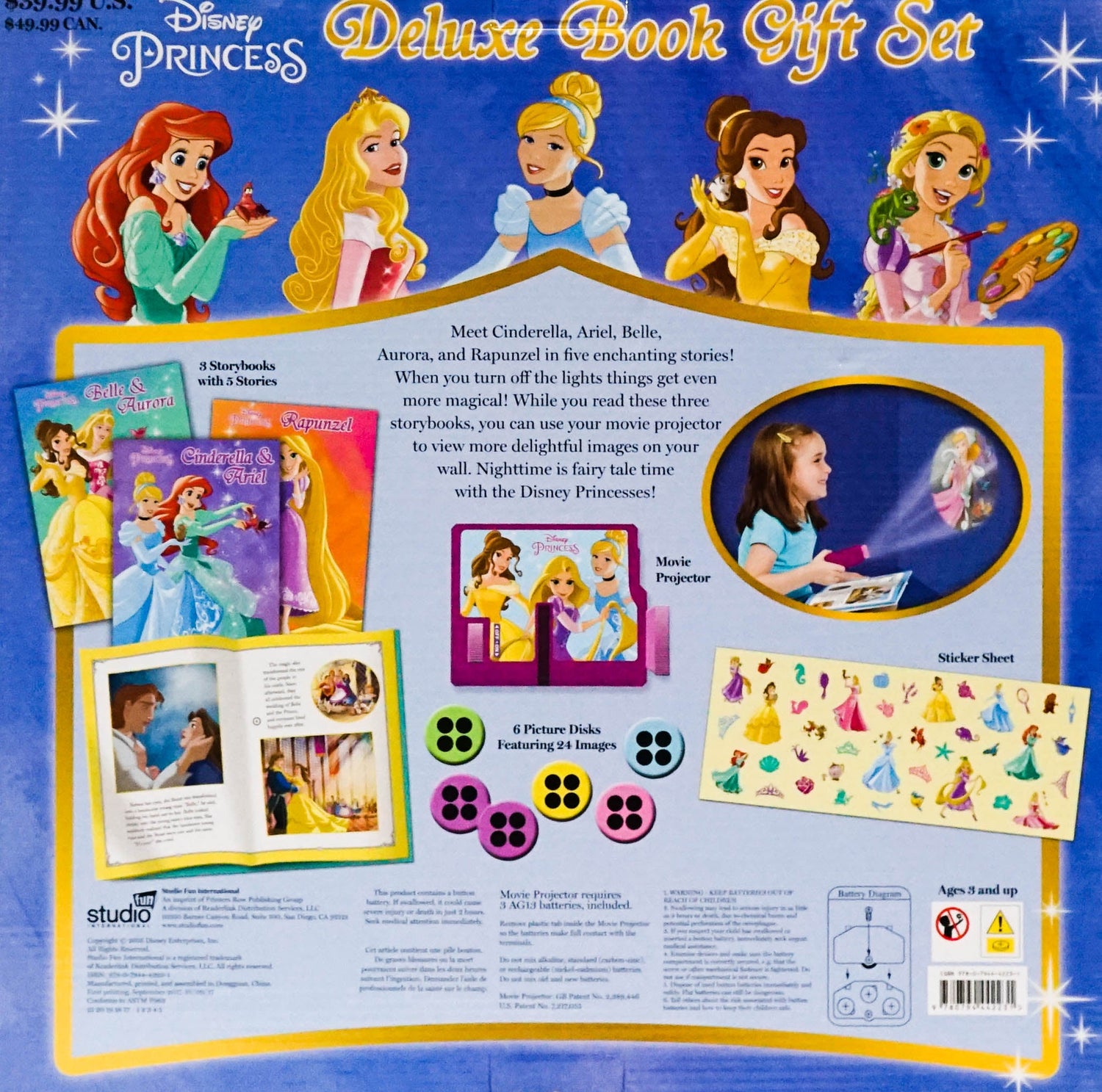 Meet Cinderella, Ariel, Belle, Aurora and Rapunzel in five enchanting stories! When you turn off the lights things get even more magical! While you read these three storybooks, you can use your movie projector to view more delightful images on your wall. Nighttime is fairy tale time with the Disney princesses!