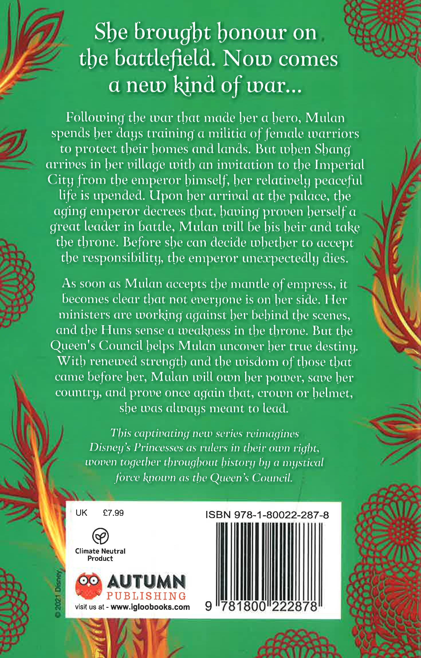 As soon as Mulan accepts the mantle of Empress, it becomes clear that not everyone is on her side. Her ministers are working against her behind the scenes, and the Huns sense a weakness in the throne. But the Queen's Council helps Mulan uncover her true destiny. With renewed strength and the wisdom of those that came before her, Mulan will own her power, save her country, and prove once again that, crown or helmet, she was always meant to lead.